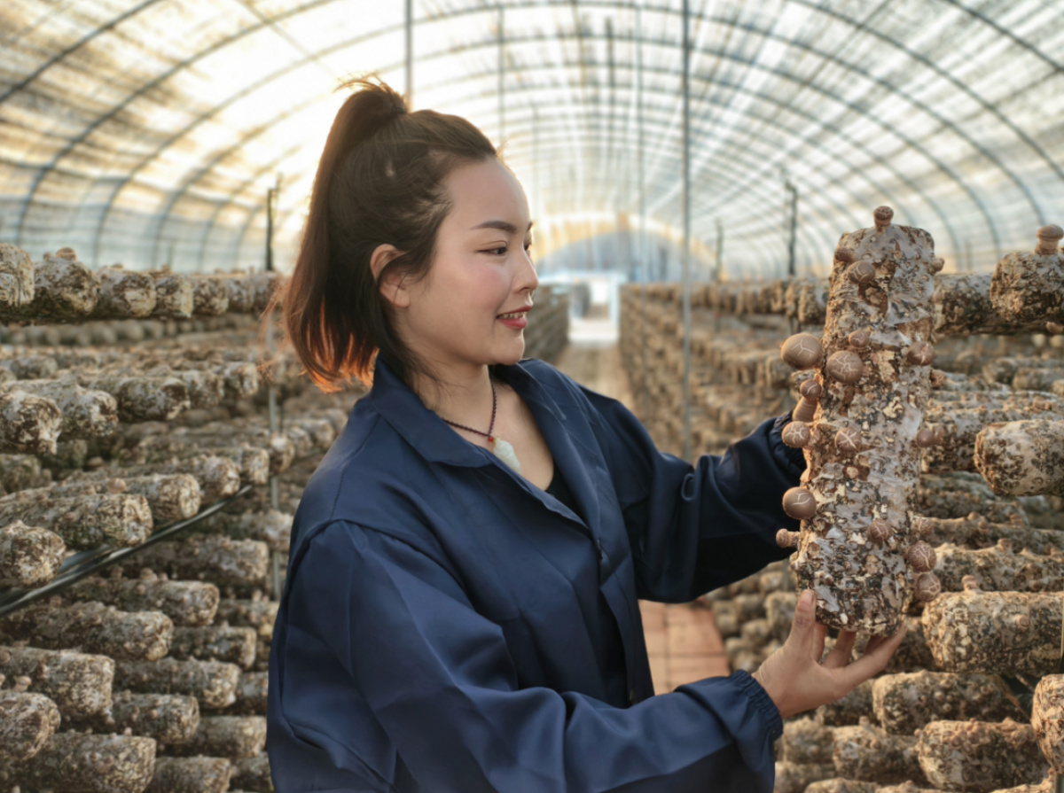 随着香菇产业的兴起,越来越多村民尝到了种植香菇的甜头。在包信镇党委政府的大力支持下,2025年7月,该镇又动工建设了河南豫福农业科技有限公司,该公司创新采用村集体和农户共同运营的模式,“村民们有钱出钱,有力出力,一起享受产业发展收益!”作为村干部和“一乡一业一主播”双重身份的张吻吻,带领街该村群众盘下3个大棚,每个棚里有1万3千多菌棒。她捧着手里饱满的河北10号菇介绍:“这一批3天后就能售卖,发菇多、价值高、产量好!”同时,她还借助自己的主播身份,通过电商平台把家乡的香菇推向全国,为产业销售打开了更广阔的天地,也让更多村民参与到产业增值环节中。