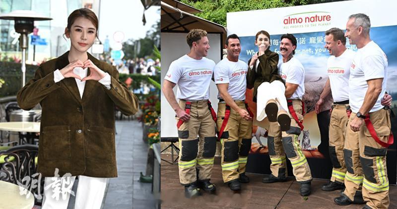 明报:施匡翘跟澳洲猛男消防员互动:真是好大只“澳洲消防员月历”记者会今日(18日)举行,其中五位成员Ben Wallace、Alex Eldridge、Aaron Ficheroux、David Moore及 Kane Crellin 专程来港参与慈善活动,施匡翘获邀担任嘉宾,跟众猛男互动。消防员跟她合照时突然起哄将她抱起,施匡翘笑言初时有点惊又担心自己太重,但消防员表现好松松:“真是好大只,抱起人来却感觉轻松又有安全感。”她表示早已听闻这班消防员热心公益,推出慈善月历支持动物保育,亲眼见到他们更觉亲切,有型、有爱心,还非常幽默,交流起来很愉快。施匡翘家有4岁贵妇狗是她的宝贝,她称小狗早已成为生活中的重要伙伴,缘分遇到这只宝贝狗,以领养代替购买是非常有意义的理念,未来若有机会仍会优先考虑领养。