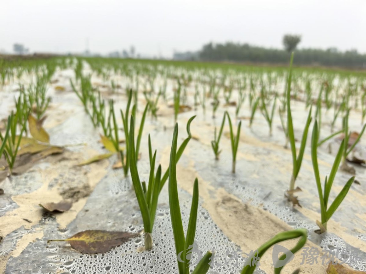 河南杞县葛岗镇晚播大蒜“盖棉被” 冬日田间焕生机