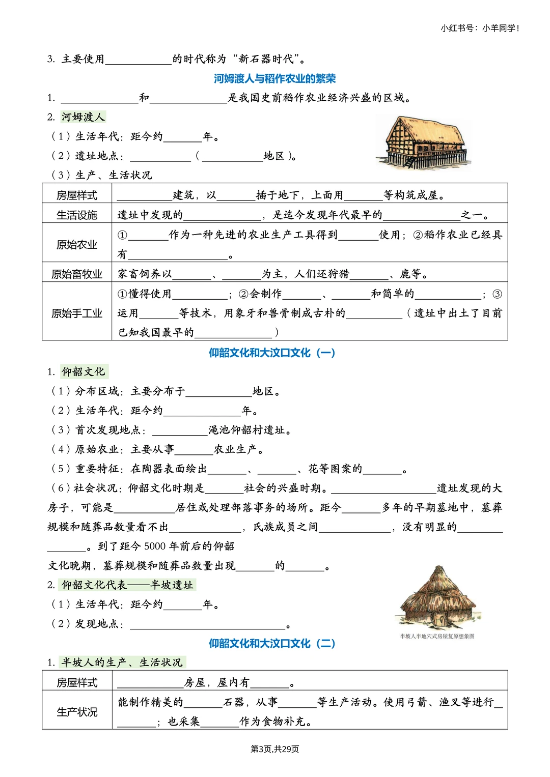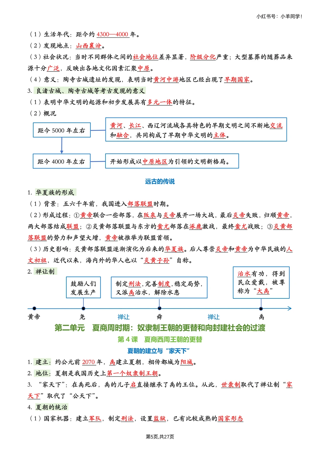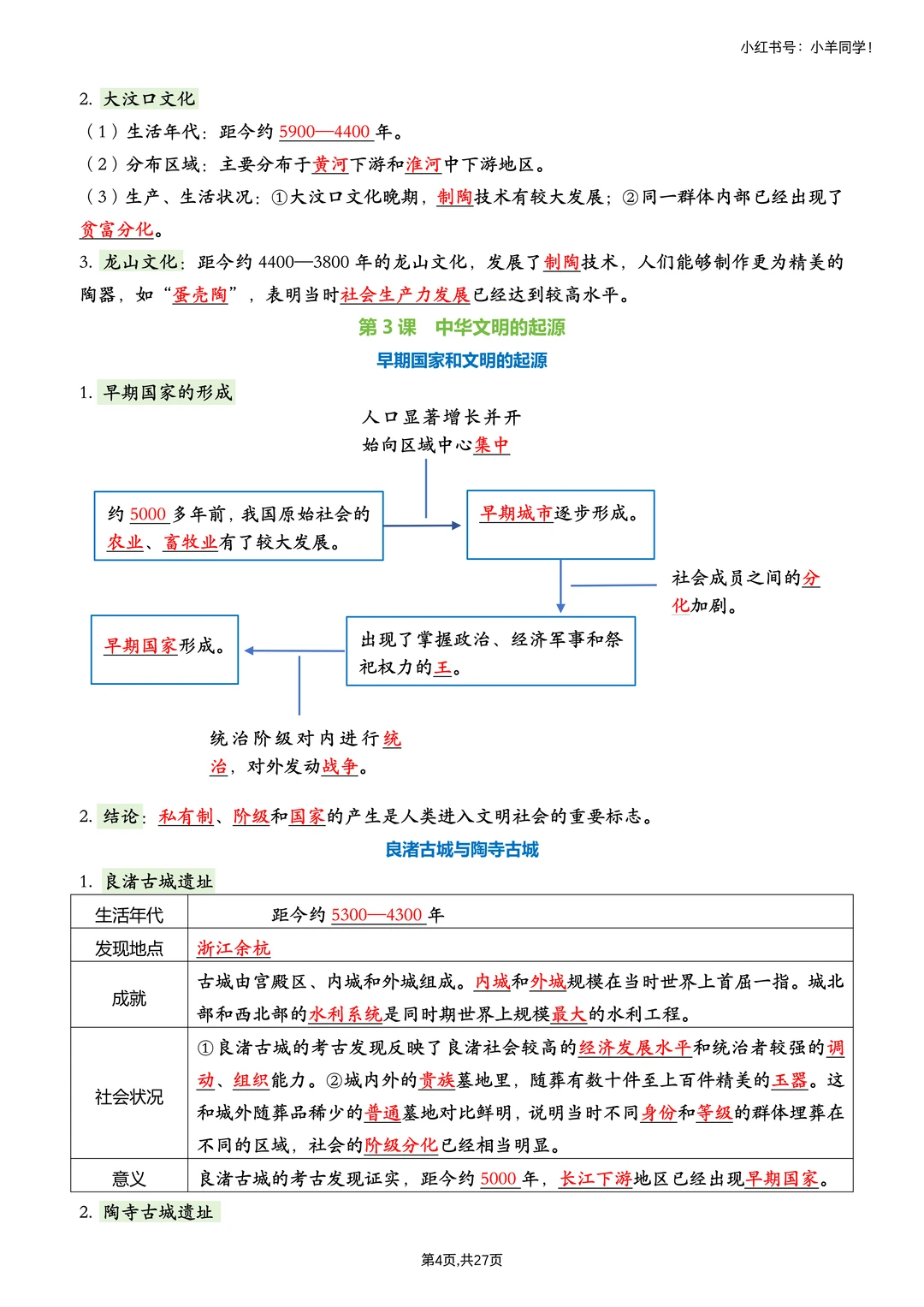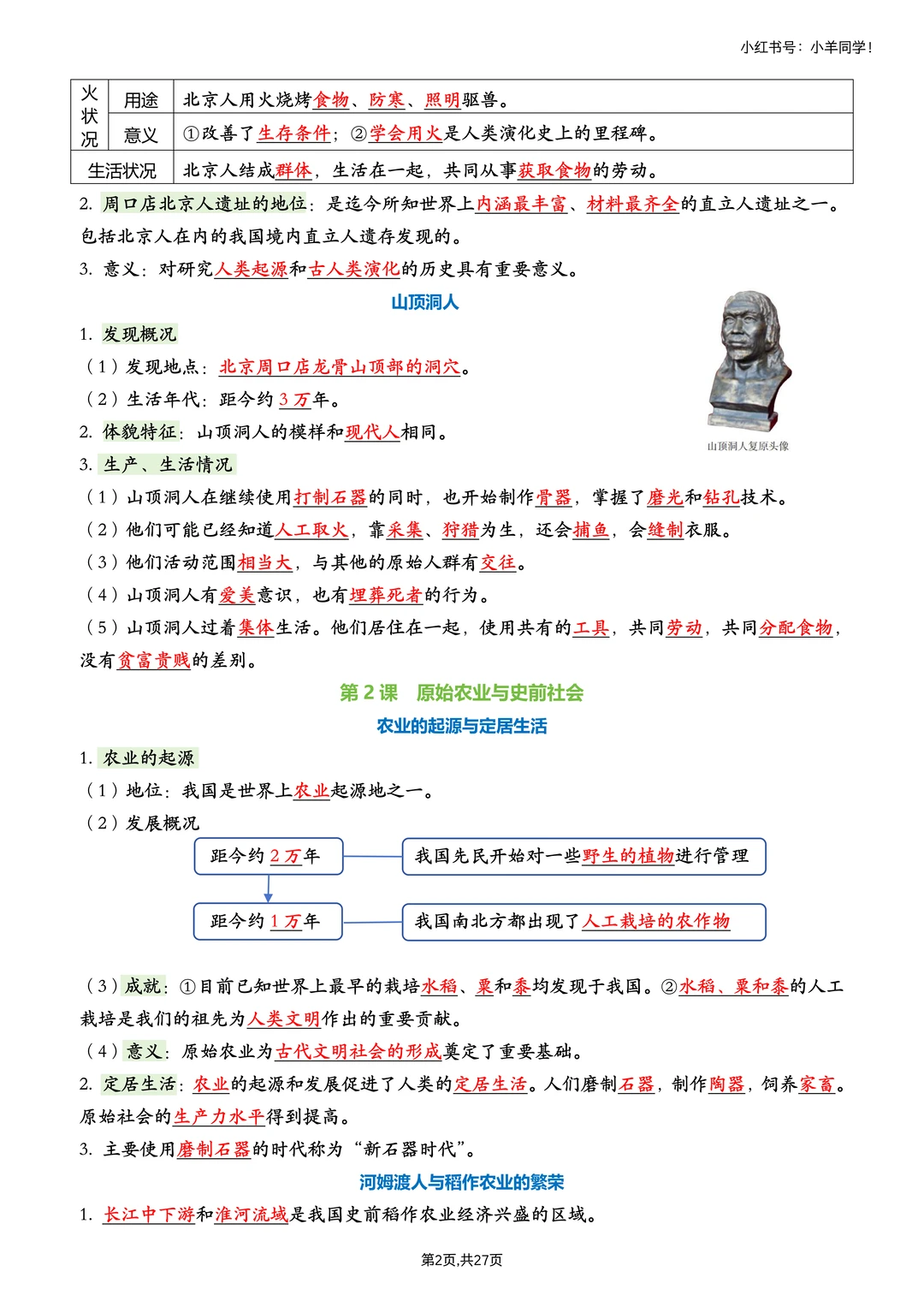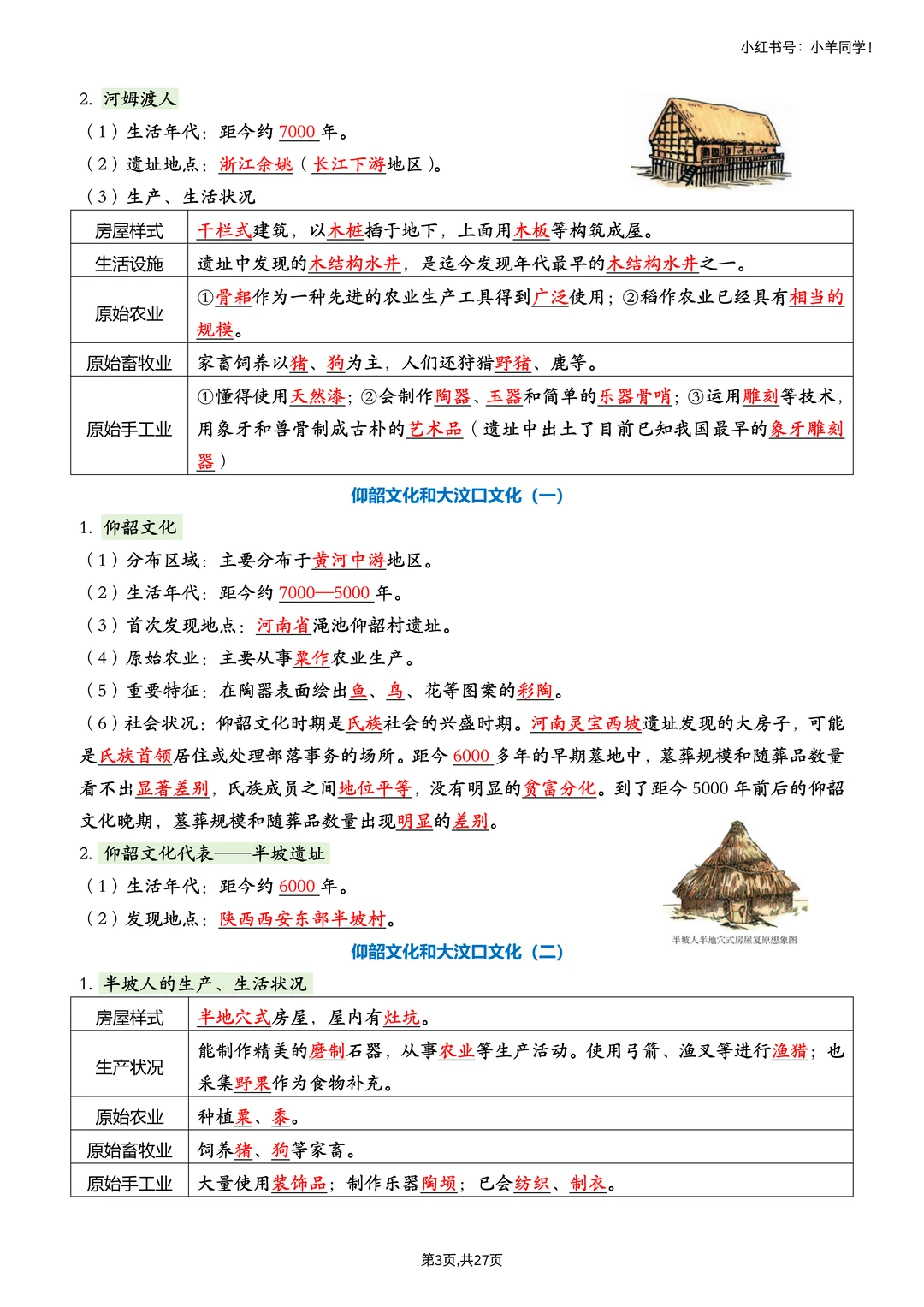 ✅ 逐课归纳:从史前时期到三国两晋,20+课文的时间线、重难点、常考点一个不落