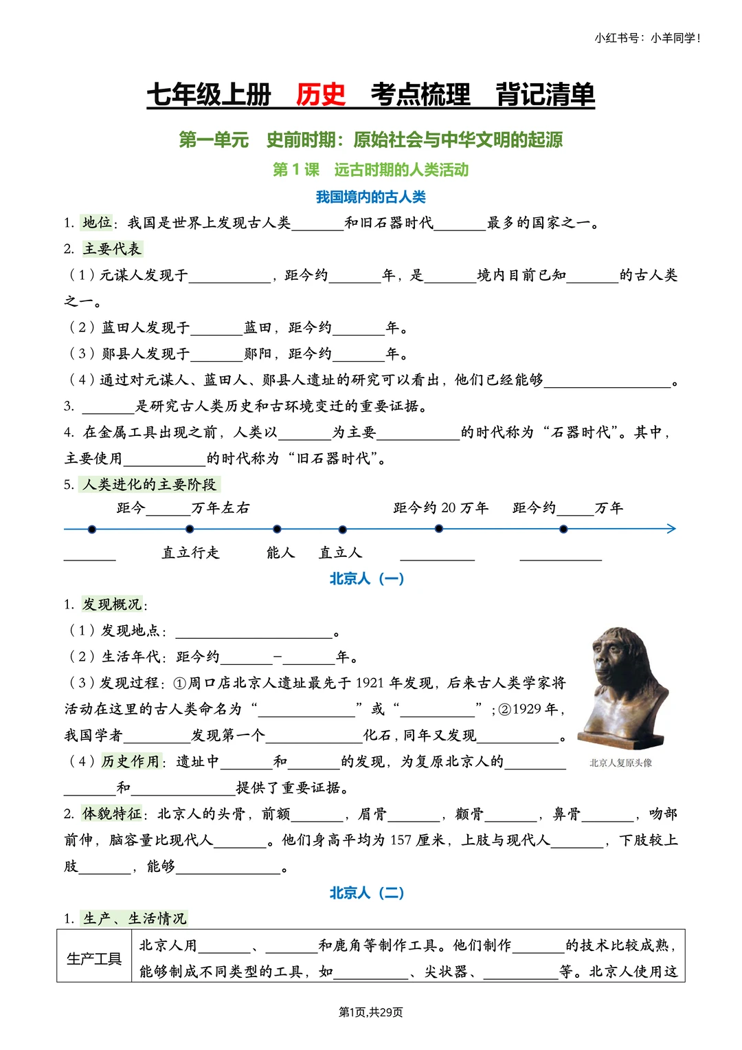 熬了整整两周整理的【七上历史考点梳理背记清单】,每一课的重点都挖得明明白白!