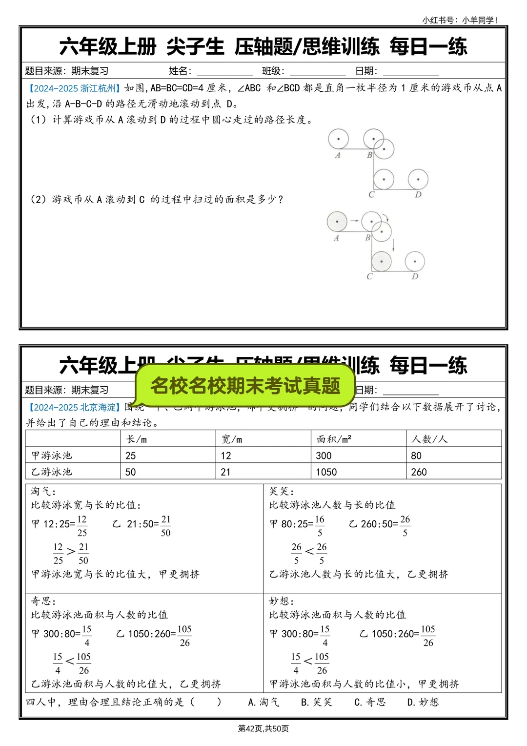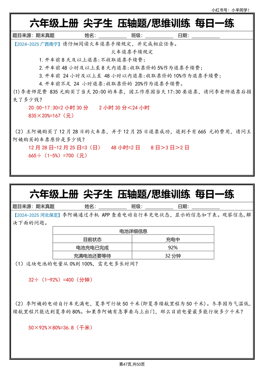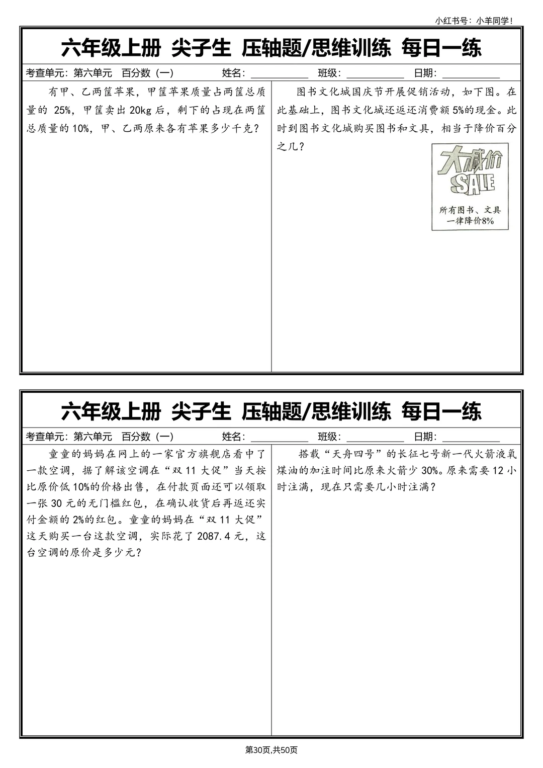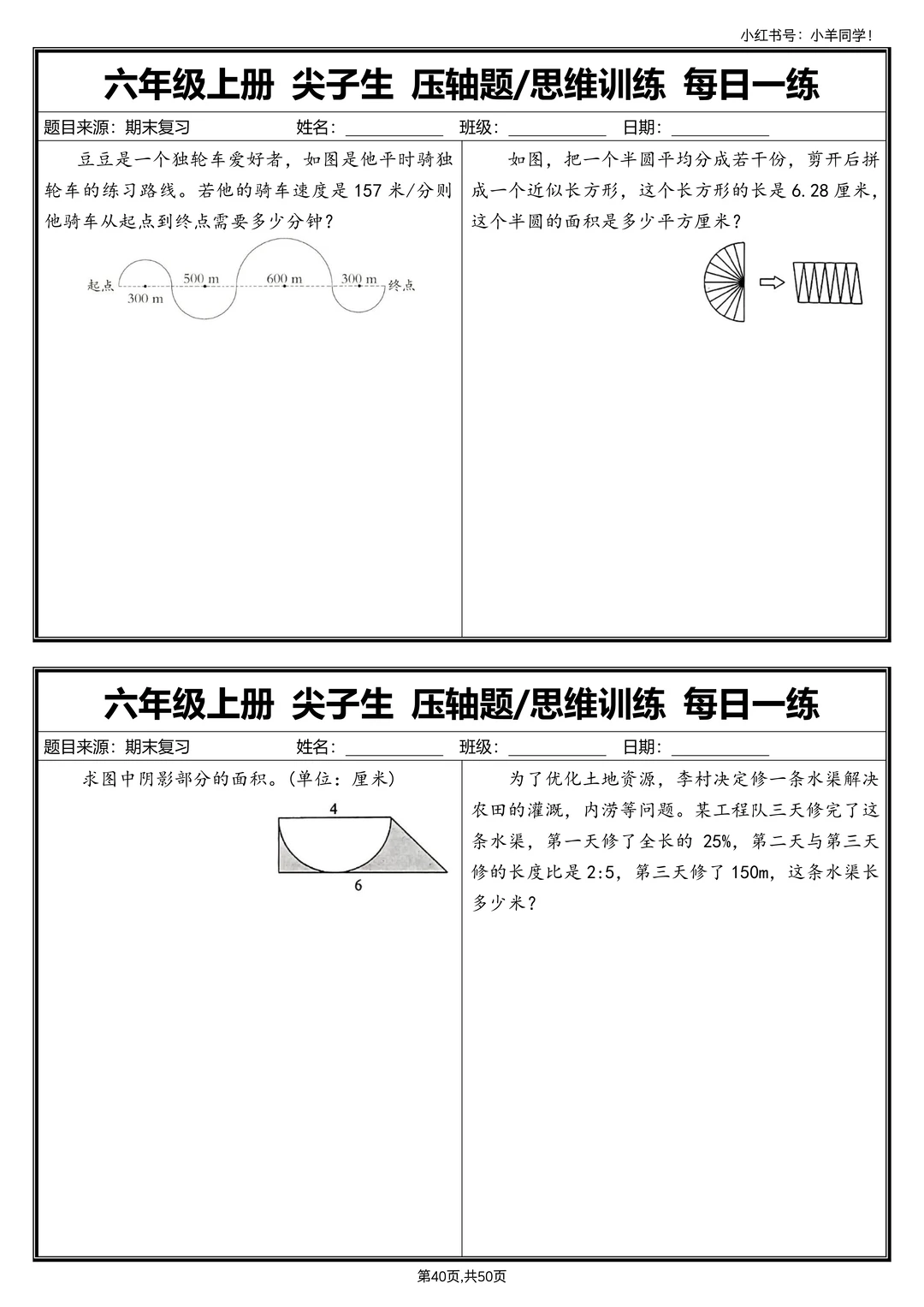 六上数学丨尖子生压轴题/思维训练每日一练