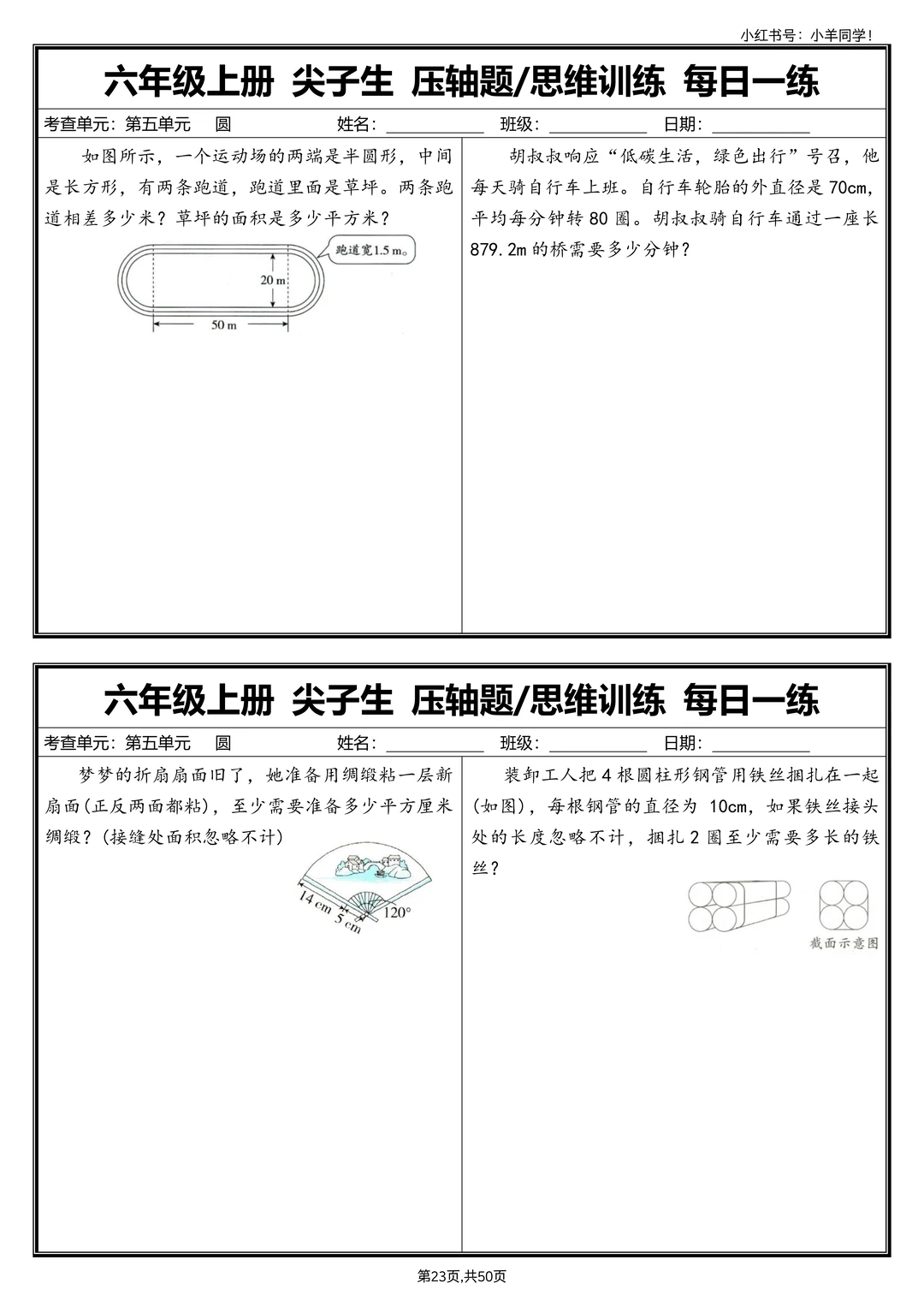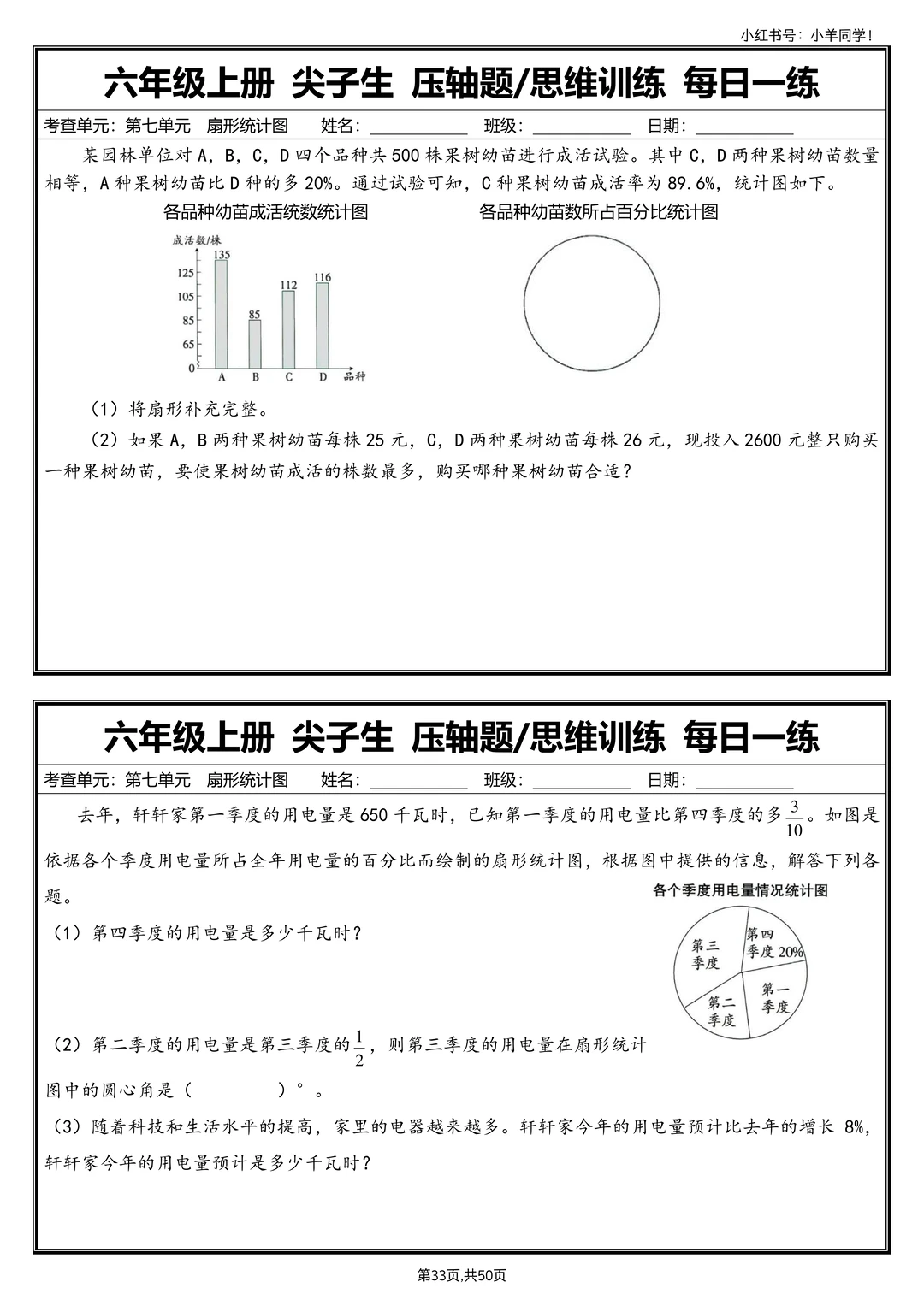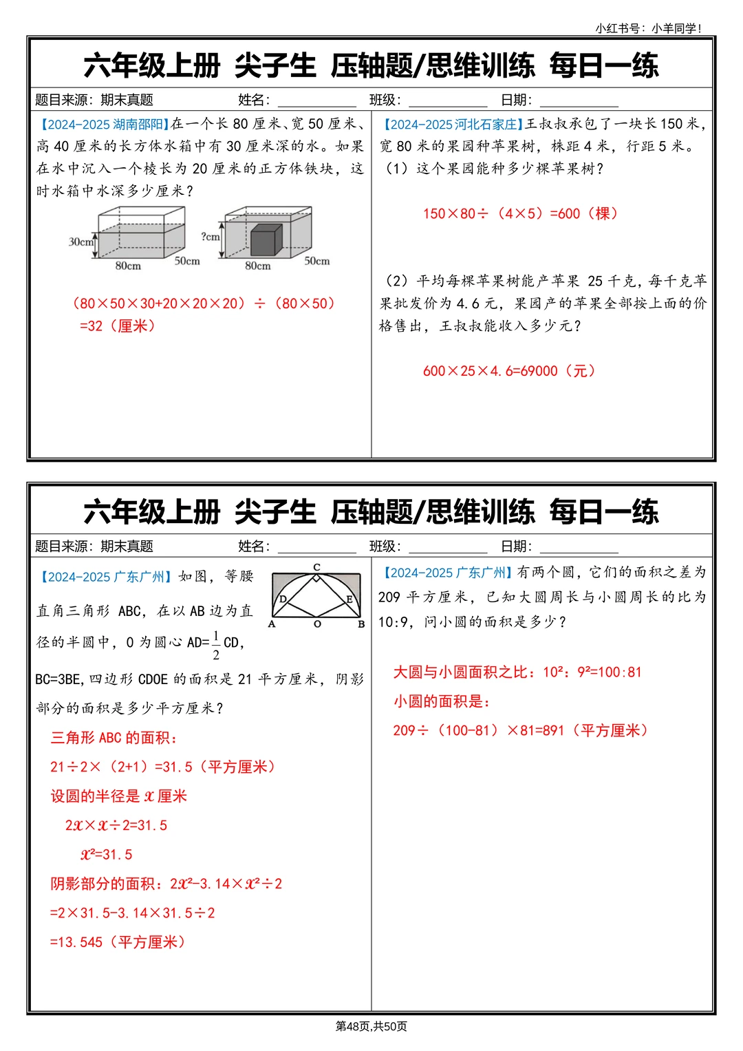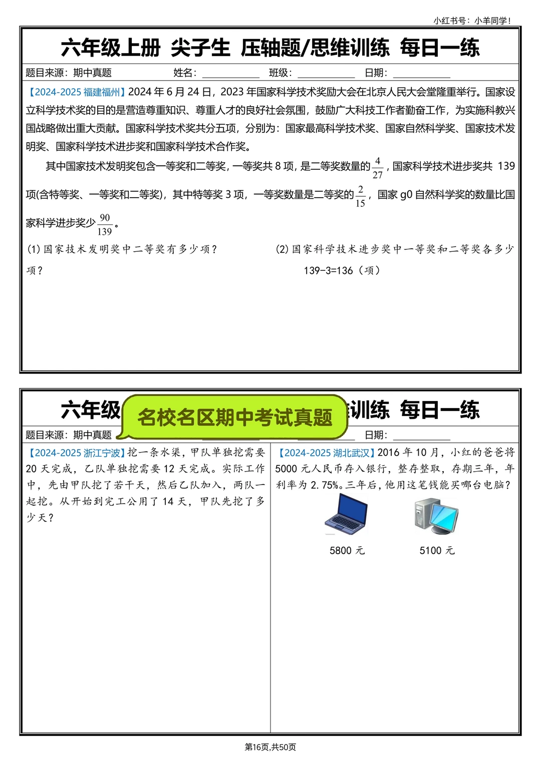 六上数学丨尖子生压轴题/思维训练每日一练