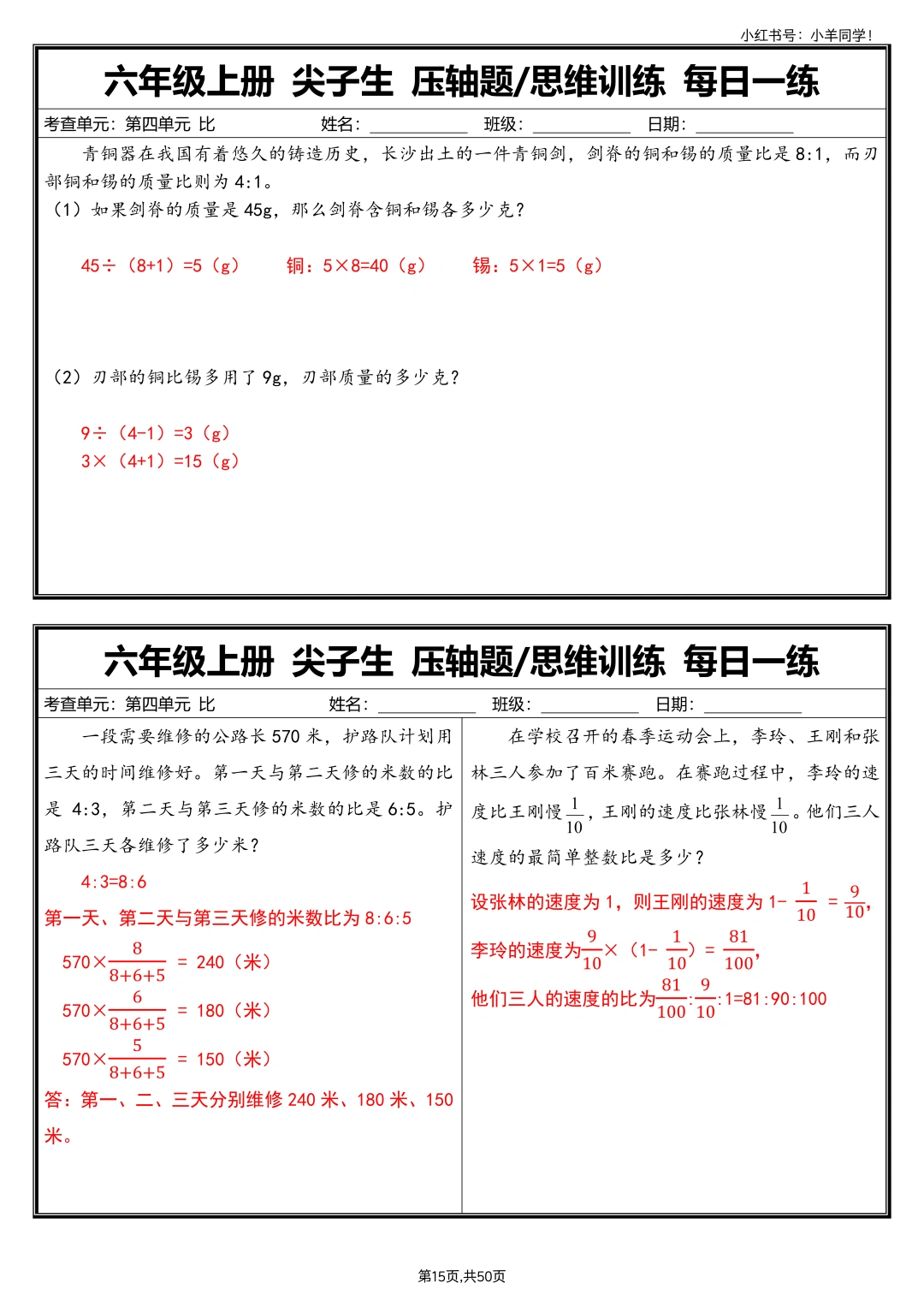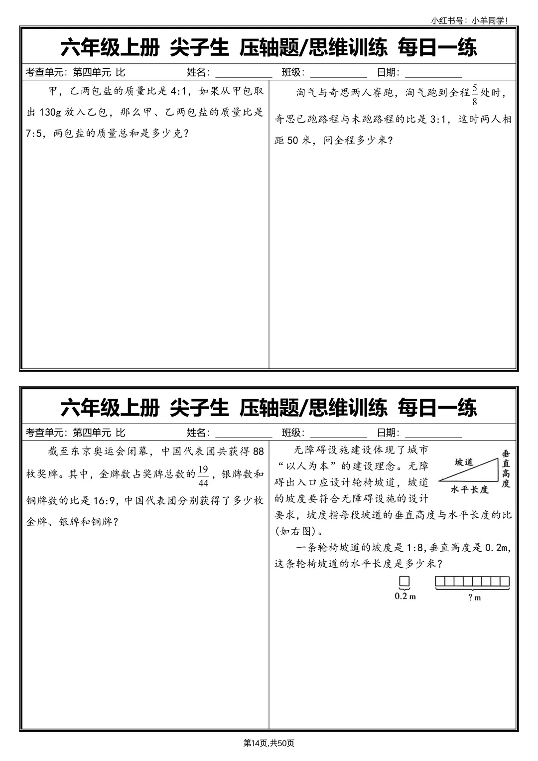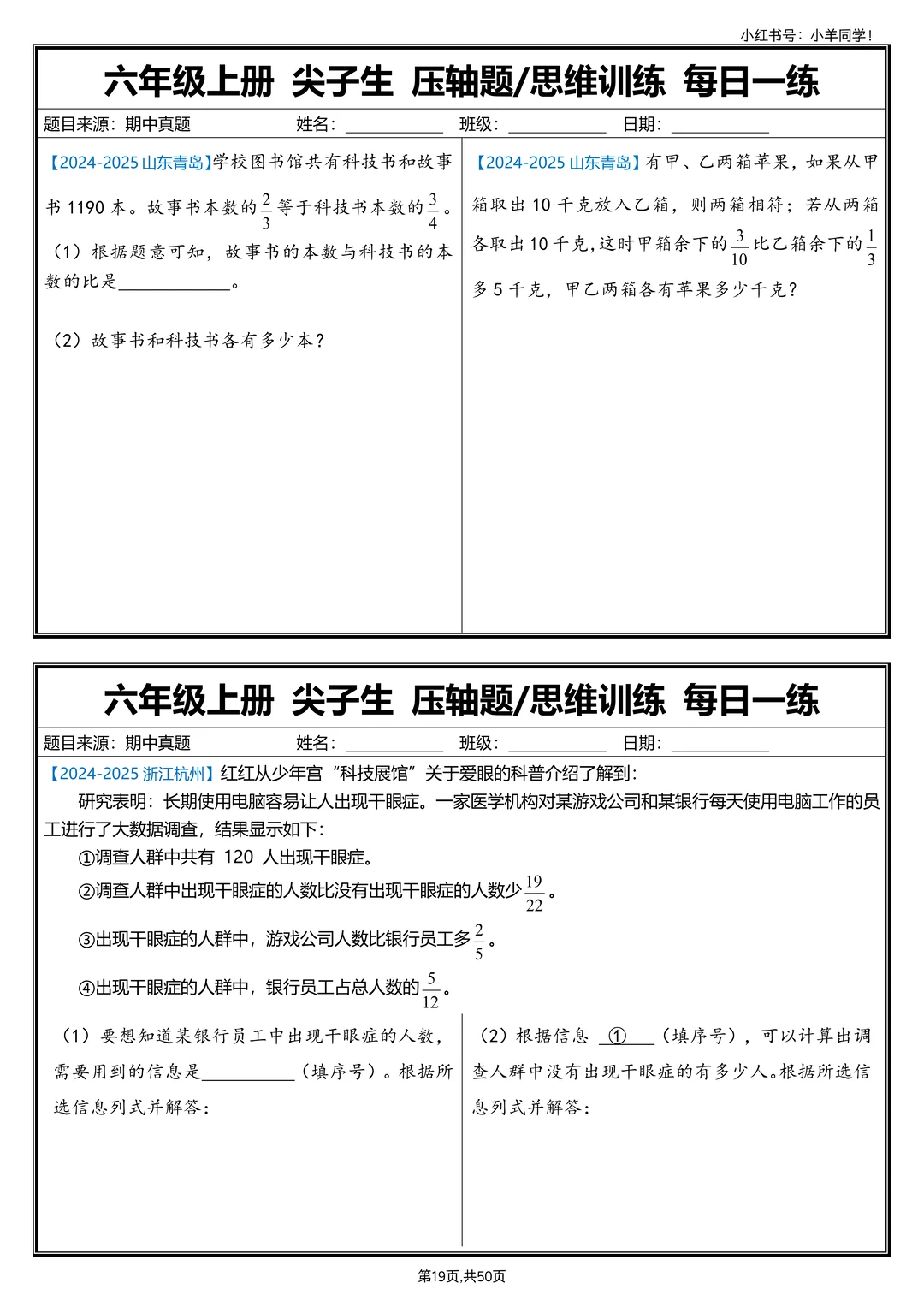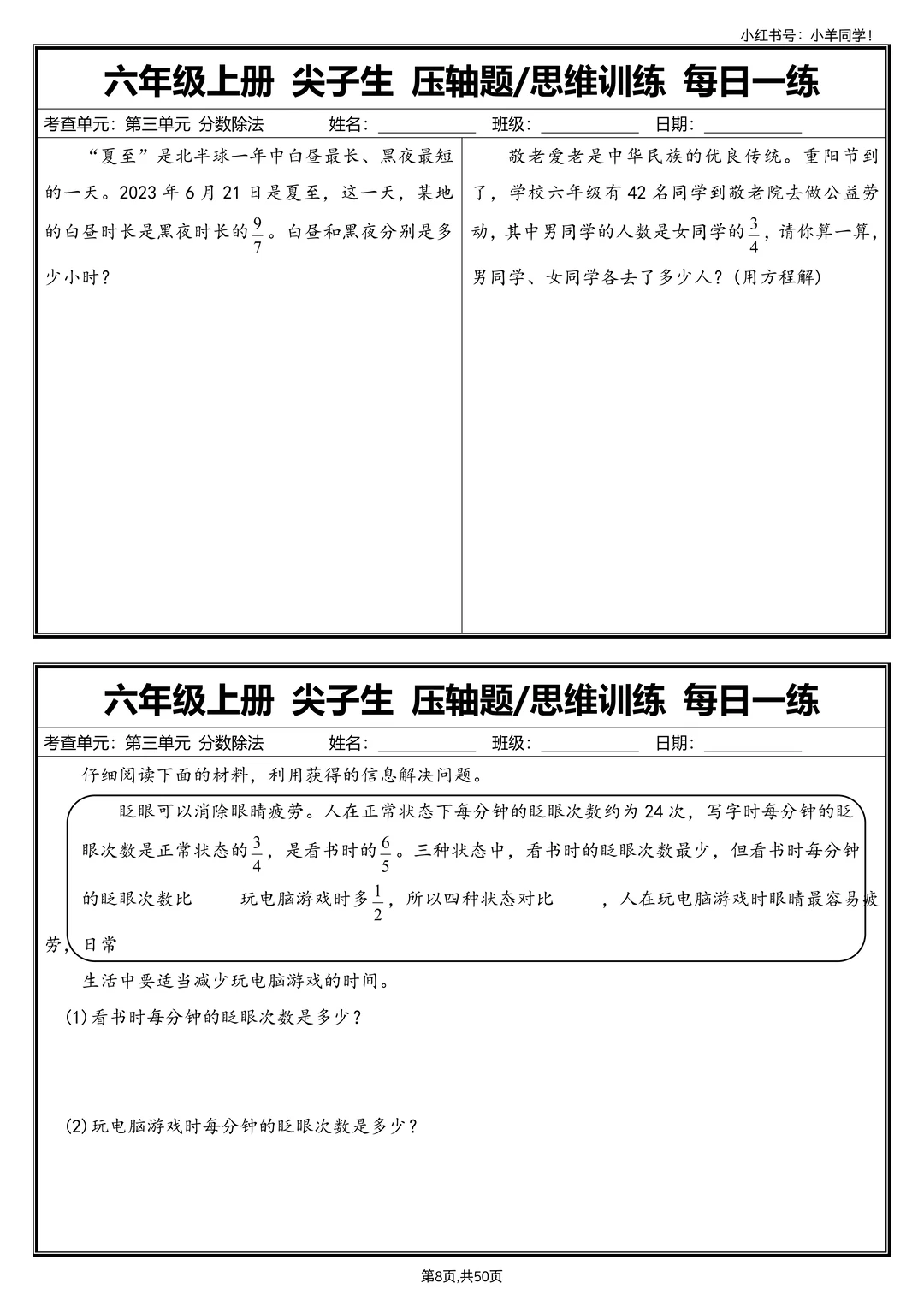 六上数学丨尖子生压轴题/思维训练每日一练