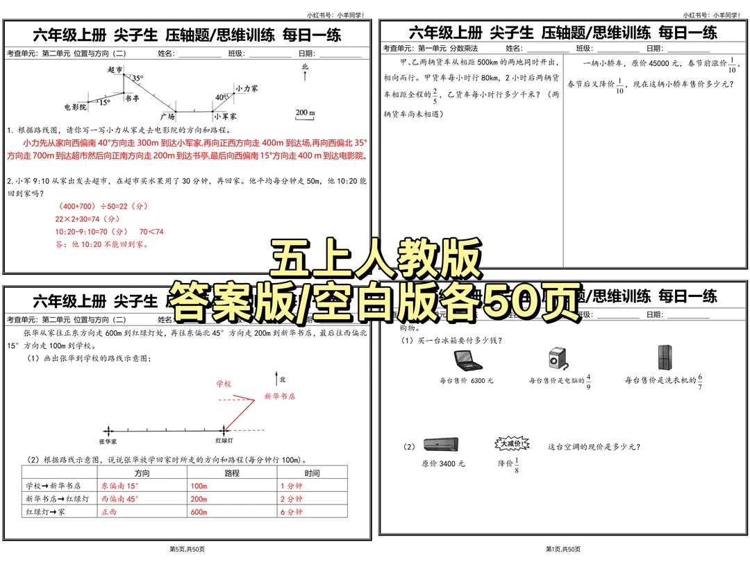 ▪️压轴题每日一练—— 每道题都是从近年真题卷里扒出来的精华,还额外加了多个名校地区的期中/期末真题❗❗ ▪️注意:题目难度很大,适合拔高!!都是压轴题❗❗ ✅人教版专属:精准覆盖 1-8单元 + 期中真题+期末真题 ✅轻量化练习:一天一练道不费妈,难度刚好练思维 ✅自带答案版:做完直接对,不用再到处搜答案浪费时间 ▪️现在娃用它刷题,我总算不用跟着焦虑了~期中前有这一份,复习方向都明了! ▪️这可是花了好多时间整理的原创,禁转载商用哦~