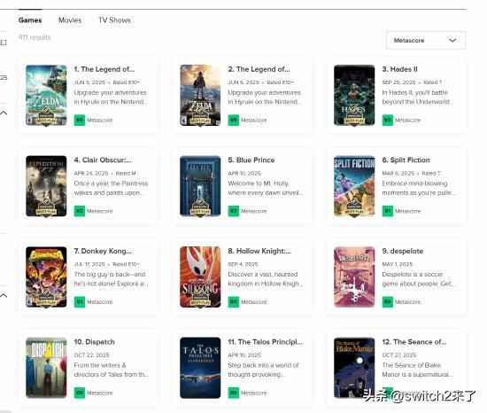 2025年TGA年度游戏提名现已正式公布,入选游戏分别为《光与影:33号远征队》《死亡搁浅2:冥滩之上》《咚奇刚 蕉力全开》《哈迪斯2》《空洞骑士 丝之歌》《天国:拯救2》,其中《光与影:33号远征队》更是打破单届TGA提名数历史纪录,获得12项提名,成为本届夺魁大热门。 不过外媒Insider Gaming发文表示,虽然被提名的六款游戏确实都是非常优秀的作品,但另有四款游戏同样值得入选,分别为《蓝途王子》《超英派遣中心》《双影奇境》以及《球比伦战记》。 其中,《蓝途王子》和《双影奇境》均为M站媒体评分90分以上的神作,如果不算增强版的《塞尔达传说 荒野之息》和《王国之泪》,那么这两款游戏均能排进今年前五。 而《超英派遣中心》这款超英职场喜剧游戏一经推出便以超级英雄般的姿态席卷各大平台,着实令人印象深刻。《球比伦战记》则将“肉鸽”游戏那令人欲罢不能的循环玩法体现得淋漓尽致。Insider Gaming表示,《球比伦战记》甚至能被誉为“2025年的《小丑牌》”!