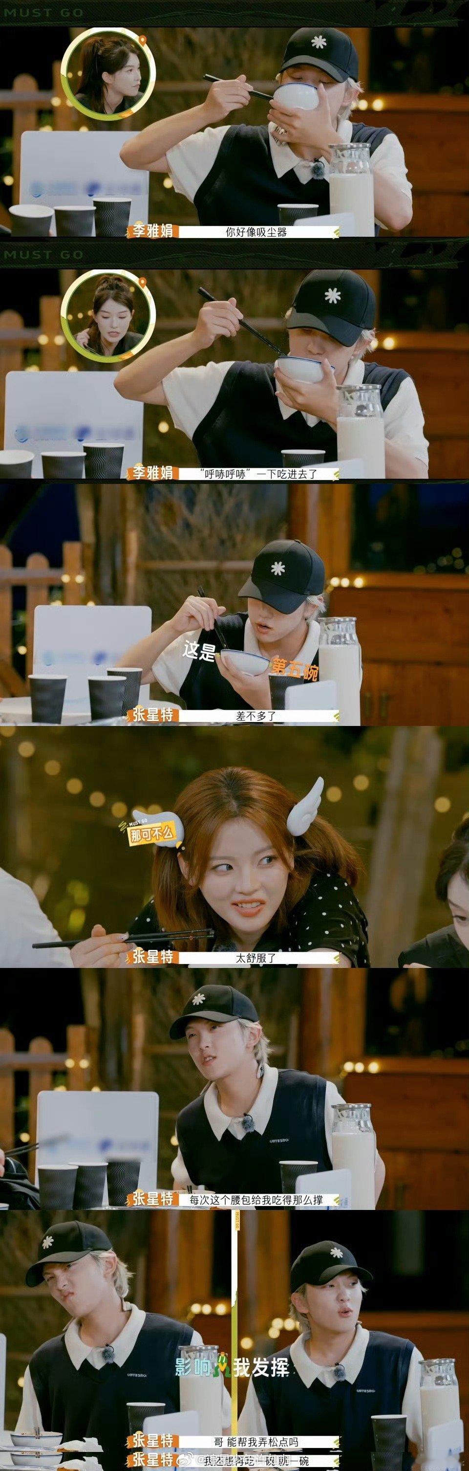 这干饭实力我直接看呆!哐哐七碗下肚还嫌腰包勒太紧,导演组都要瑟瑟发抖了~李雅娟那句“吃饭像吸尘器”简直精准吐槽,米粒扒拉得干干净净,这是把《非来不可》吃成自助餐厅了吧!