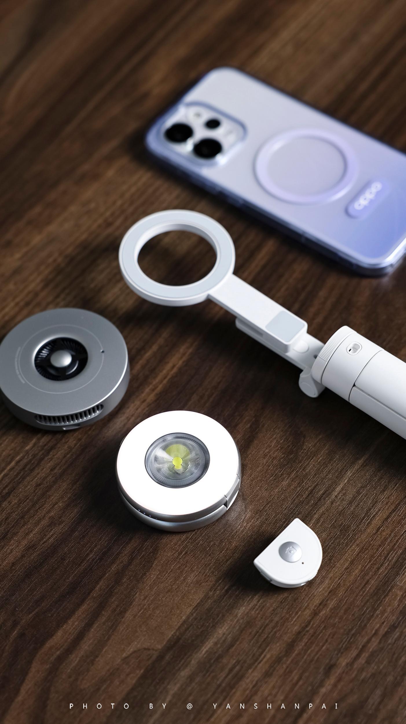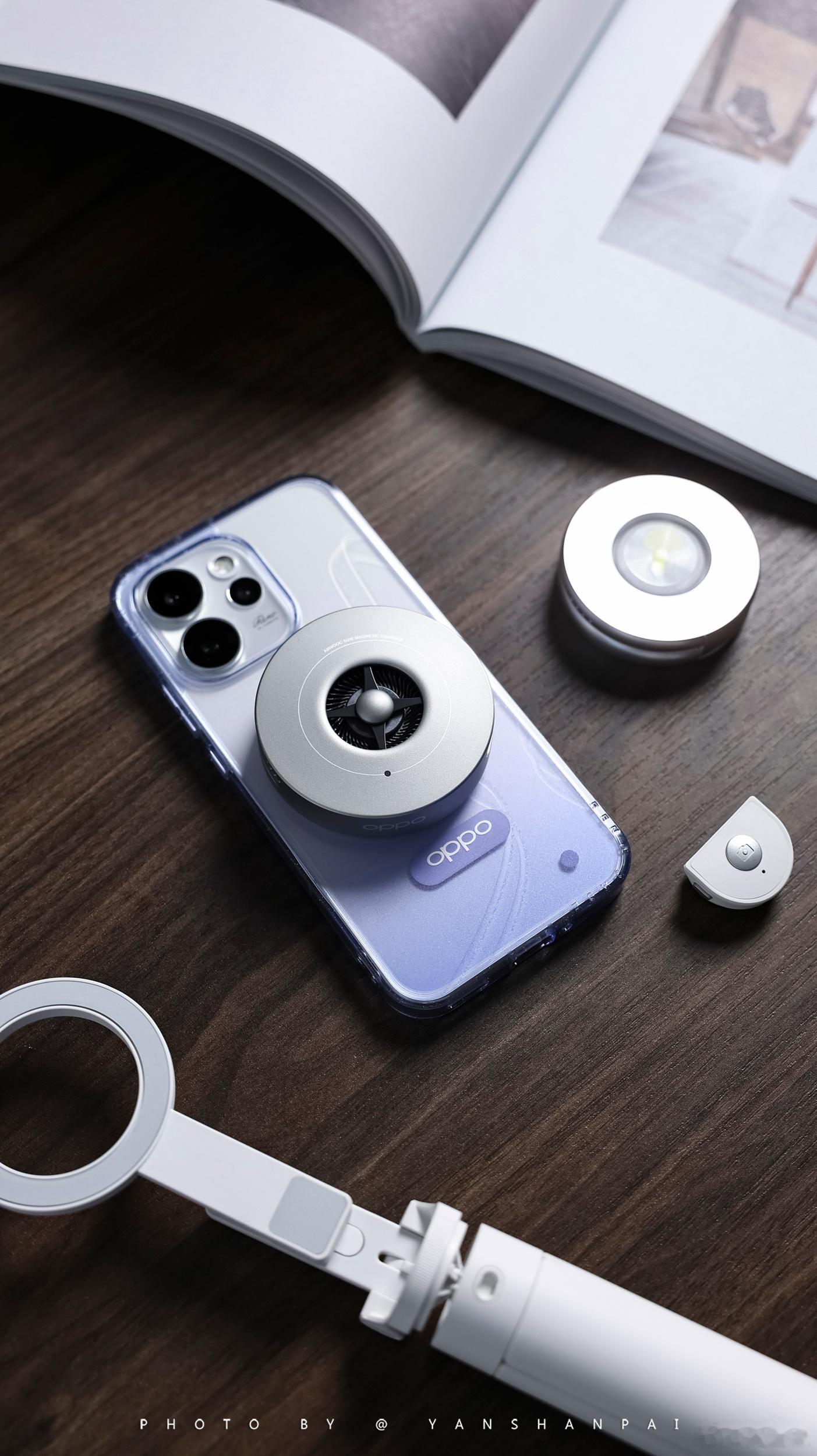 OPPO的磁吸生态真是越来越丰富了,以刚发布的OPPO Reno15 Pro为例,只要戴上官方磁吸手机壳,就可以轻松搭配磁吸散热器、自拍杆以及闪光灯,更绝的是自拍杆还能和磁吸闪光灯和散热器配合使用,再加上OPPO Reno15系列专门的直播优化,这不就是妥妥的直播神器么