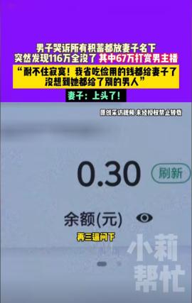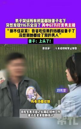 “电视剧都不敢这么演!”11月17日,河南郑州,一男子哭诉自己婚后8年打拼的116万元定期存于妻子名下,没想到被妻子挥霍一空,倒欠8万网贷!其中67万元打赏男主播。丈夫痛哭:我省吃俭用的钱,没想到都给了别的男人! 婚姻的本质,就是双方从各自的家庭脱离出来组建成一个新的小家,夫妻双方都应该对彼此负责,家庭的稳定源于责任的共担,如果只有一方全力投入,另一方只顾自己贪图享乐,逃避责任,那么这个家也迟早会分崩离析! 河南郑州的刘先生与妻子结婚后,便挑起了家庭的经济重担,为了给妻子和孩子更好的生活,常年在外打工,8年来他省吃俭用,并将工资准时汇给妻子储存,妻子则负责在家带娃,管理家庭的生活支出。 前段时间,刘先生想要查看账户的具体余额,但妻子却支支吾吾不让他看。刘先生顿感蹊跷,再三追问下,才发现账户里仅剩下3毛钱。 刘先生顿时感觉晴天霹雳,质问妻子存款花费具体明细,妻子这才坦白,其中有67万刷给了男主播,剩下的钱却说不清楚用在了哪儿,更让刘先生痛心的是,妻子不仅把家里的积蓄全部用光,还欠了8万元的网贷! 如今,刘先生表明已对妻子心灰意冷,准备离婚,自己也有老人孩子需要养,希望能追回部分存款,妻子也追悔莫及,表明自己是上头了,私下并没有见过面。 网友看后表示,这才是真正的背刺啊! 大家觉得刘先生的钱还能追回来吗? 信息来源:《男子哭诉所有积蓄都放妻子名下,突然发现116万全没了,其中67万打赏男主播“耐不住寂寞!我省吃俭用的钱都给妻子了,没想到她都给了别的男人”妻子:上头了!》小莉帮忙