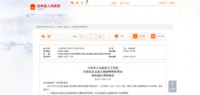 你们《关于设立延长高速公路仙峰岭收费站收取通行费的请示》(吉交联发〔2025〕52号)收悉。按照《收费公路管理条例》有关规定,现批复如下: