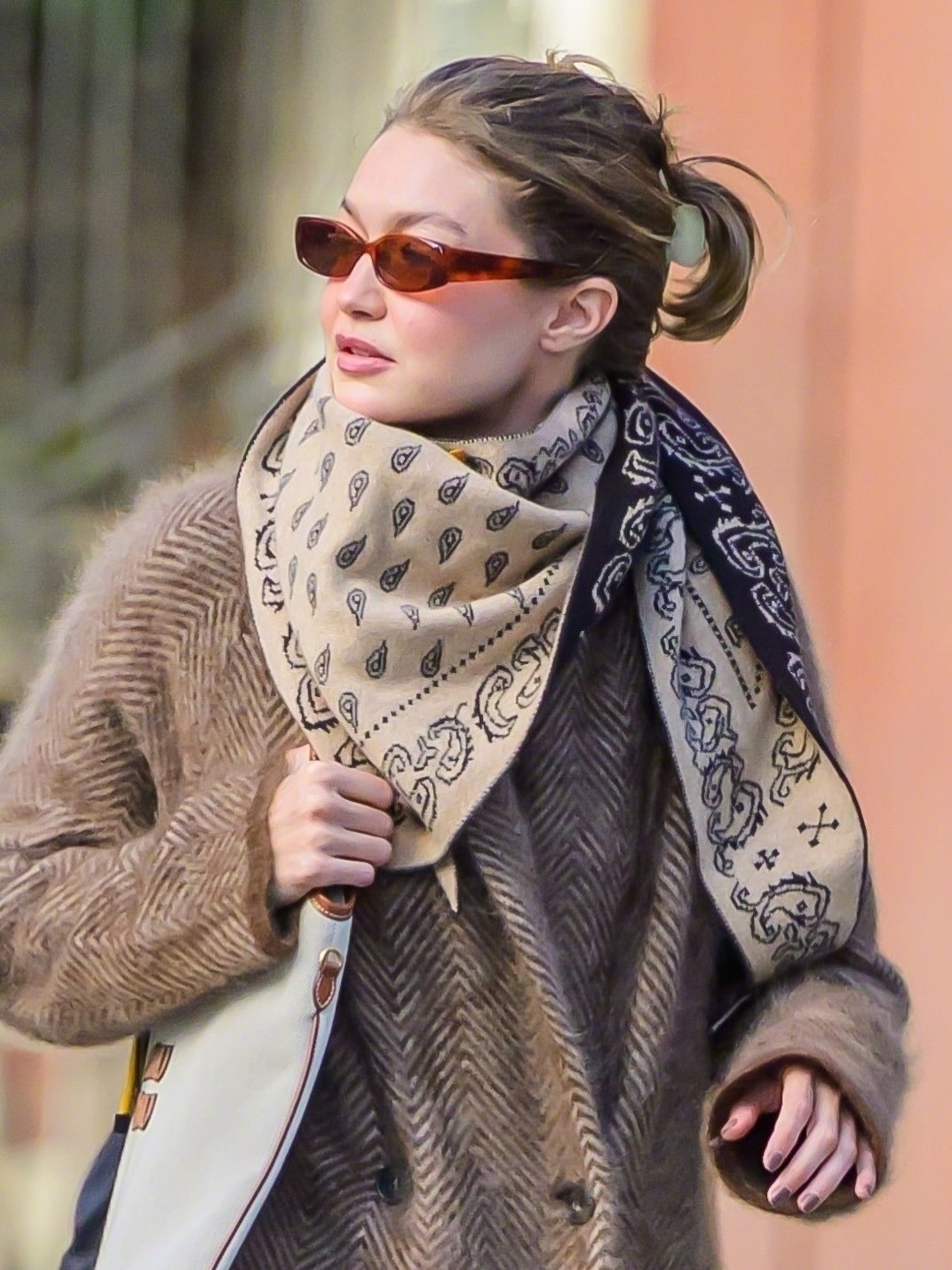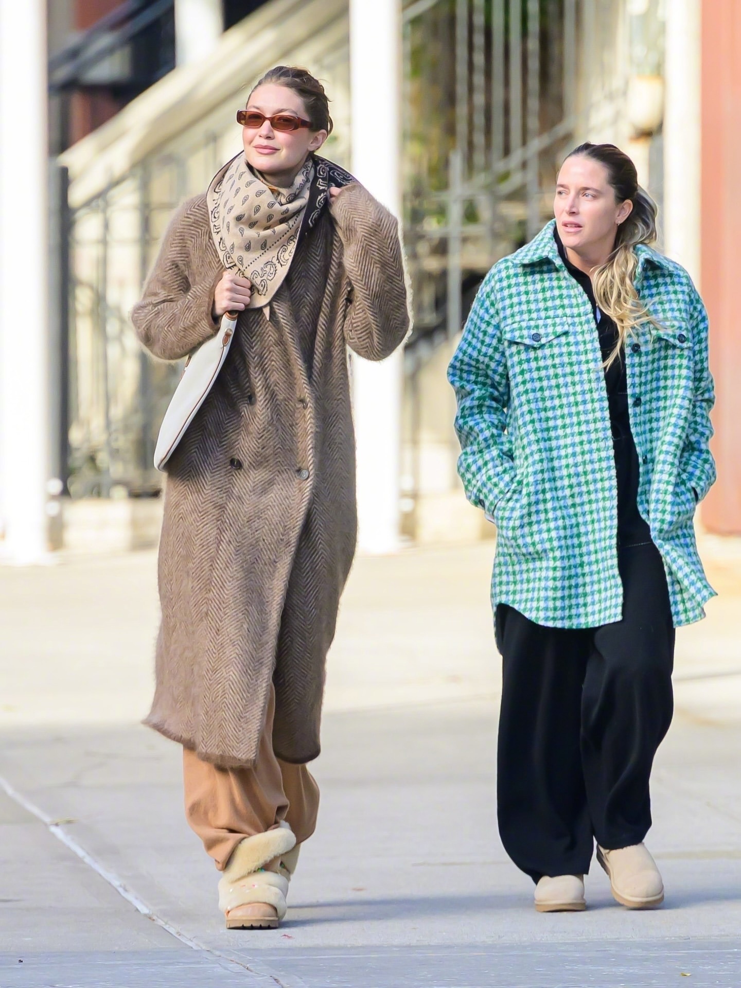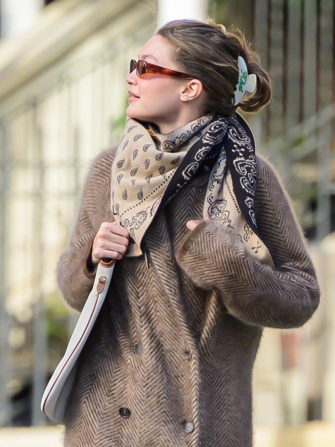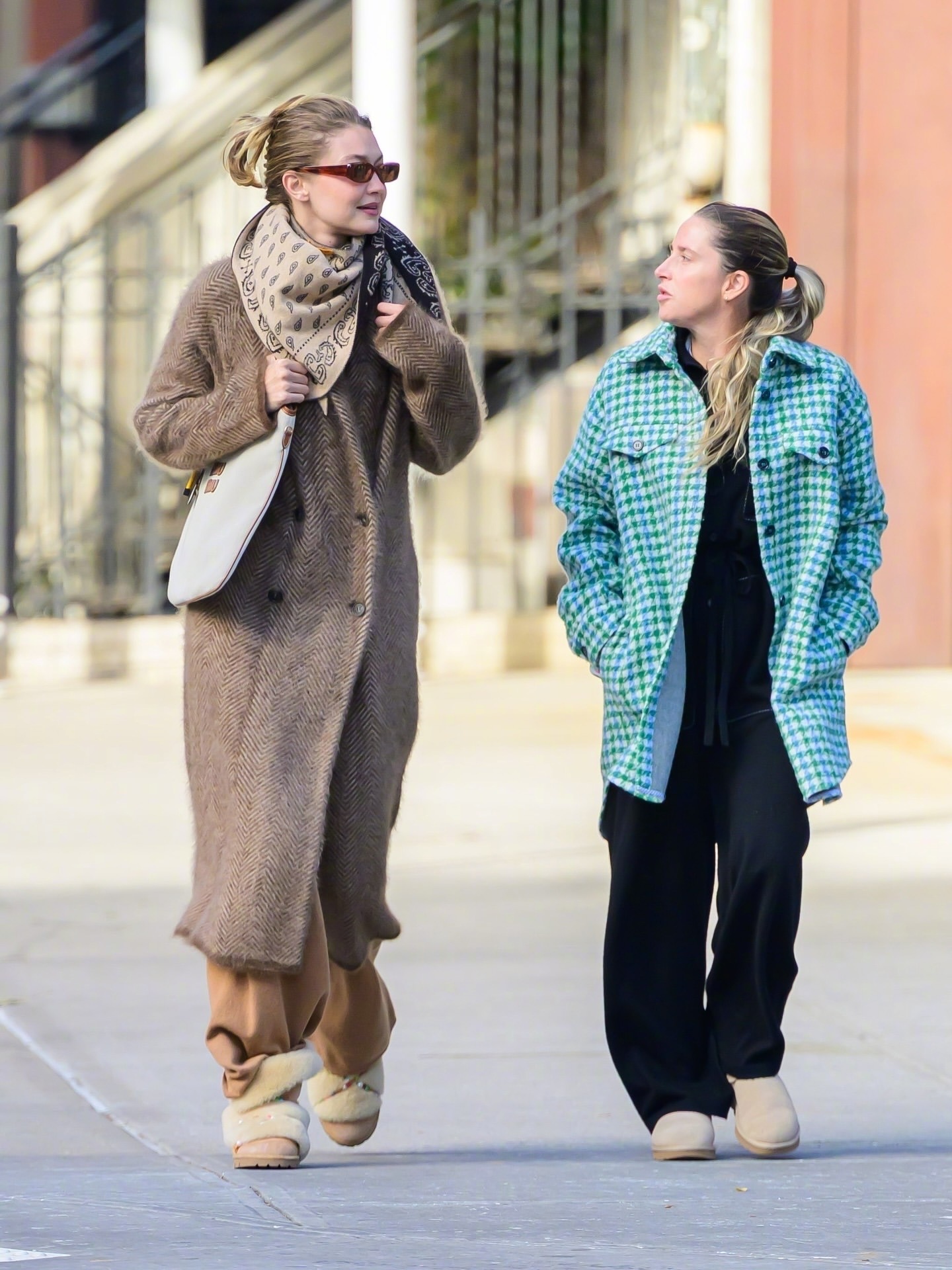 Gigi Hadid 在纽约外出的街拍。肩背Miu Miu 包包,身穿的应该是她自己品牌的羊绒大衣。前几天还与男友布莱德利·库珀一起现身宾夕法尼亚州费城的老鹰队对阵雄狮队比赛。