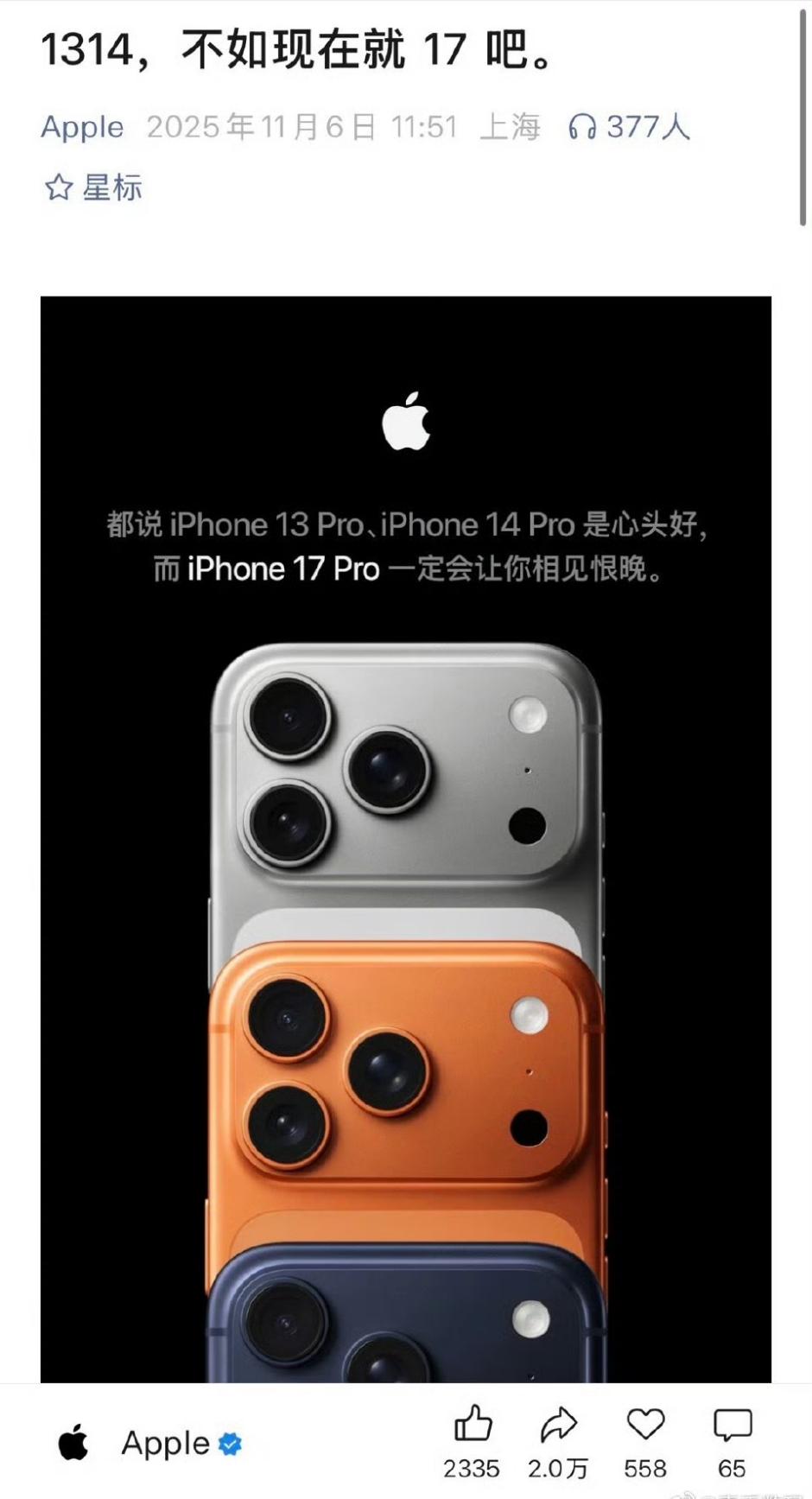 这才多久?iPhone17系列中国市场激活量超1000W。要知道苹果 iPhone 17 系列于才于 9 月 19 日正式发售,如今还不到两个月,那不是每月激活超过500w台。 iPhone 17这次是大获成功,是因为爱马仕橙的功劳吗?个人认为这个配色的功劳一定很大。 你觉得这次iPhone 17为什么那么火呢?