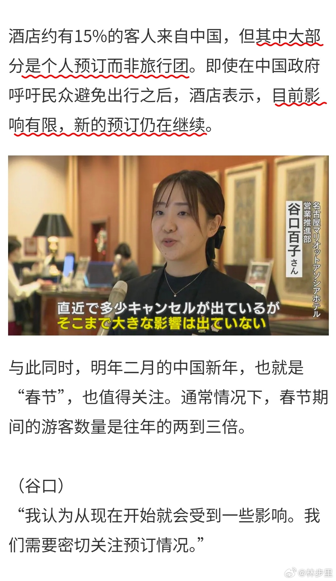 日本这边的报道。赴日旅行团被取消了很多,但一些个人旅行者并未受到影响。一部分原因,可能是个人难以跟酒店交涉退订;另一部分原因,咱们确实存在一些精日,没有大局观,就爱和国内对着干。到这份上了,措施应该更强硬一些。因为日本不会撤回,右翼就是一群不顾民间活动的癫子,它们哪怕输,也会对立到底。所以,反制措施要非常强硬,让它们吃痛才行。