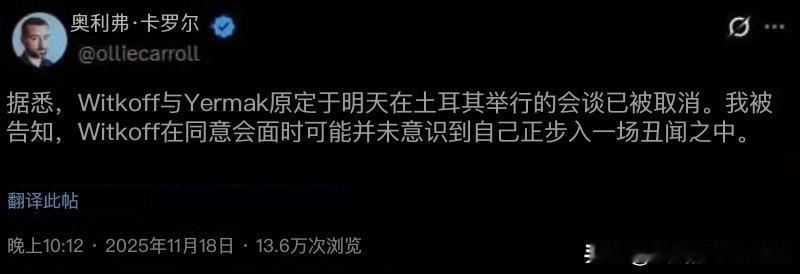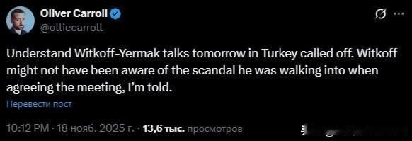 乌克兰总统办公室主任叶尔马克深陷腐败丑闻,美国特使取消与其会谈,与其保持距离。 据《经济学人》的记者奥利弗·卡罗尔透露称,美国总统中东问题特使维特科夫取消了原定于今天(19日)在土耳其与乌克兰总统办公室主任叶尔马克会面的安排,取消会面的原因可能与近期的乌克兰曝出的“明迪奇腐败案”丑闻有关。 该记者表示,在此之前,美国总统特朗普的中东问题特使维特科夫可能未意识到与叶尔马克的会谈,会促使自己陷入乌克兰丑闻中。 而随着“腐败丑闻”不断发酵,乌克兰总统办公室主任叶尔马克被曝参与其中,致使维特科夫选择与其保持距离,避免被牵扯至其中。