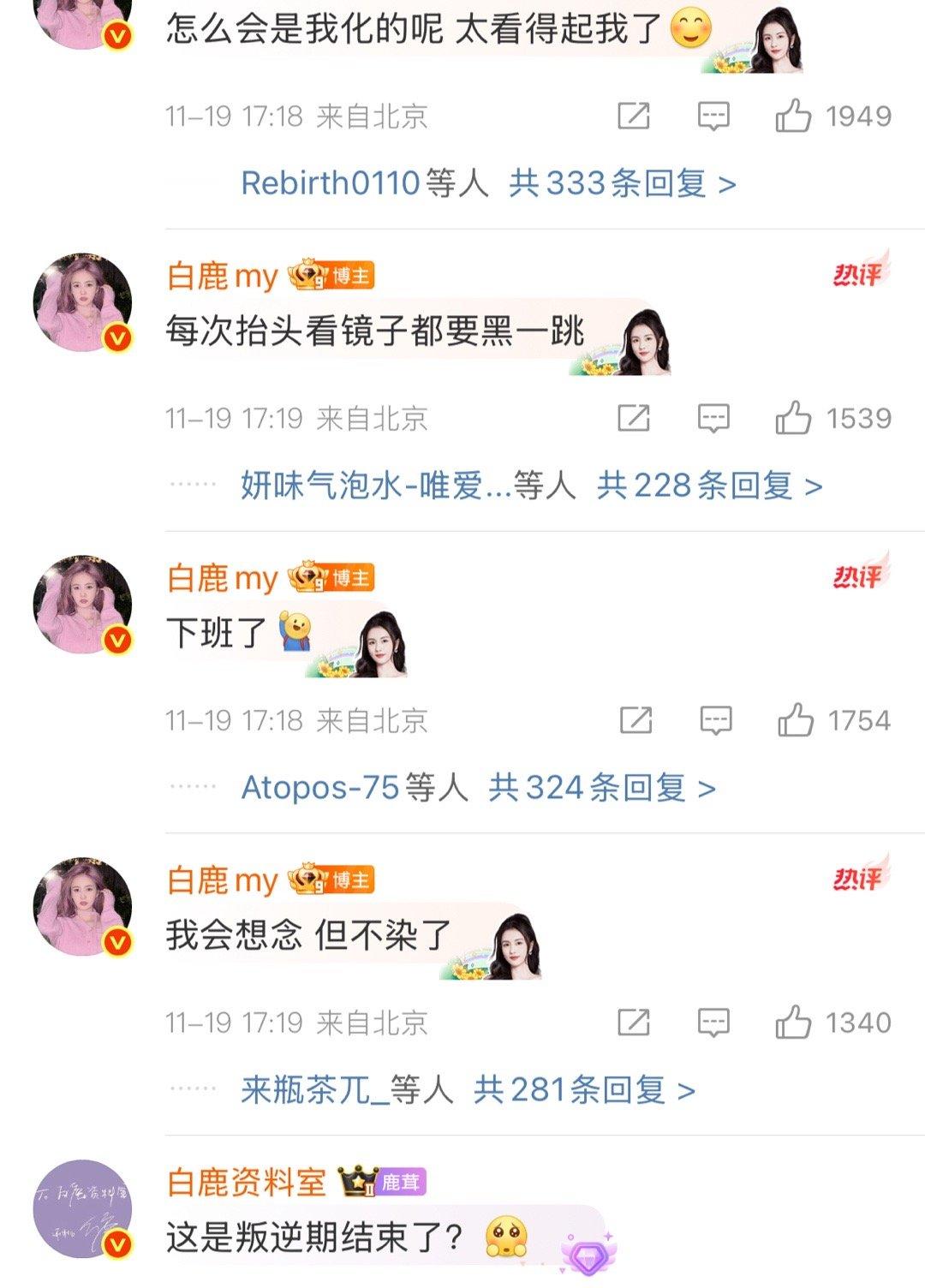 白鹿叛逆期结束✅但是我会永远记得这段所谓的“叛逆期”不一样的发色不一样的造