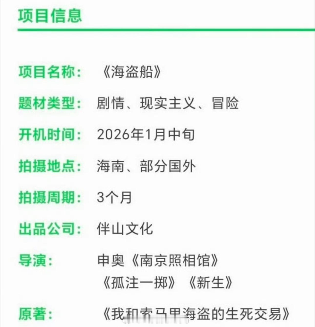 网传申奥的《海盗船》男主定的于适,暂定2026年1月开机,大家压扑还是爆?