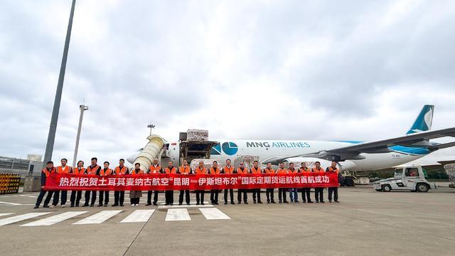 11月18日,一批重56.5吨的跨境电商货物从昆明综合保税区启运,经昆明长水国际机场搭乘MB9031次货运航班飞往土耳其伊斯坦布尔,标志着中国昆明至土耳其伊斯坦布尔定期国际货运航线正式启航。