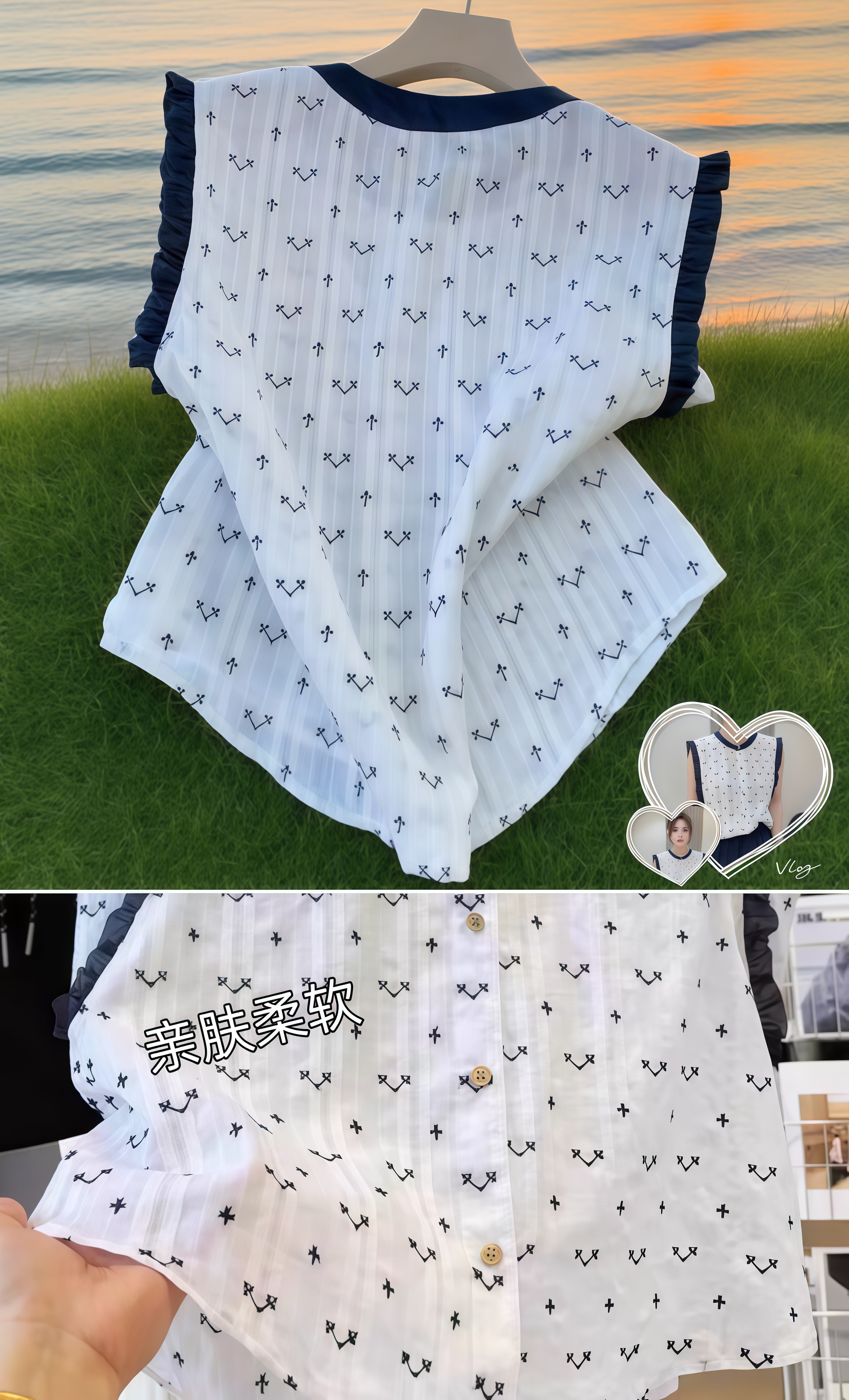 韩系氧气感🍃 把海风穿在身上的无袖衬衫 是谁还没被这件韩系小衫狠狠拿捏! 纯棉面料自带呼吸感,像把海风揉进衣料里,夏天穿清爽又透气~ 圆领+木耳边设计,把甜美藏在细节里,减龄不幼稚,韩女氛围拉满✨ 无袖剪裁超适合夏天,配短裤是松弛感citywalk,搭长裙又能秒变温柔小姐姐,一件穿出N种风格! 韩系高级感不是说说而已,简约不简单的设计,自带“人群中第一眼就被看到”的磁场🧲 不管是落日海边的浪漫,还是城市街角的随性,这件小衫都能完美融入,像从韩剧中走出来的松弛感女主穿搭,谁穿谁好看系列!