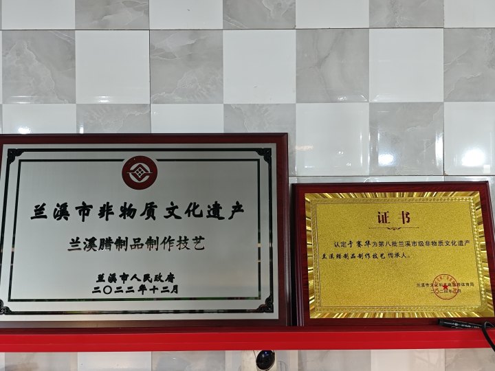 过去几年,于师傅的生意一如既往地好,他个人和家庭也都取得了一些成绩。去年,他在老家读书的儿子考上了大学,去年,他自己也被老家兰溪市文广旅体局认定为第八批兰溪市级非物质文化遗产兰溪腊制品制作技艺传承人。今年,他开始收徒弟,有四五个小伙找上门要学手艺,他收了一个江苏的小伙,很快,江苏就要开出“于赛华香肠”分店。