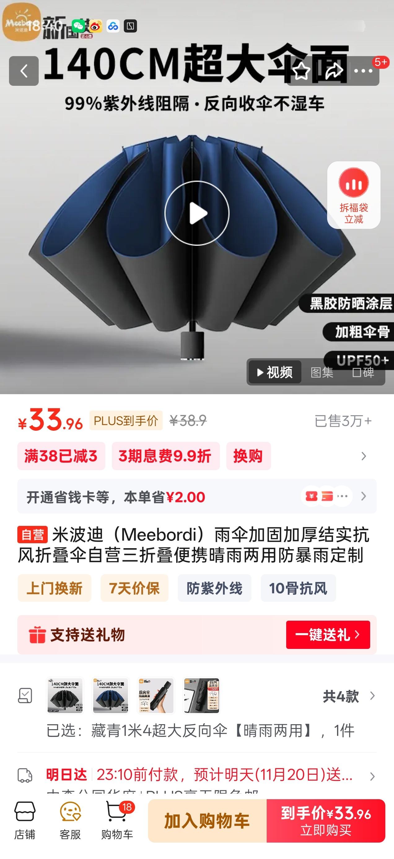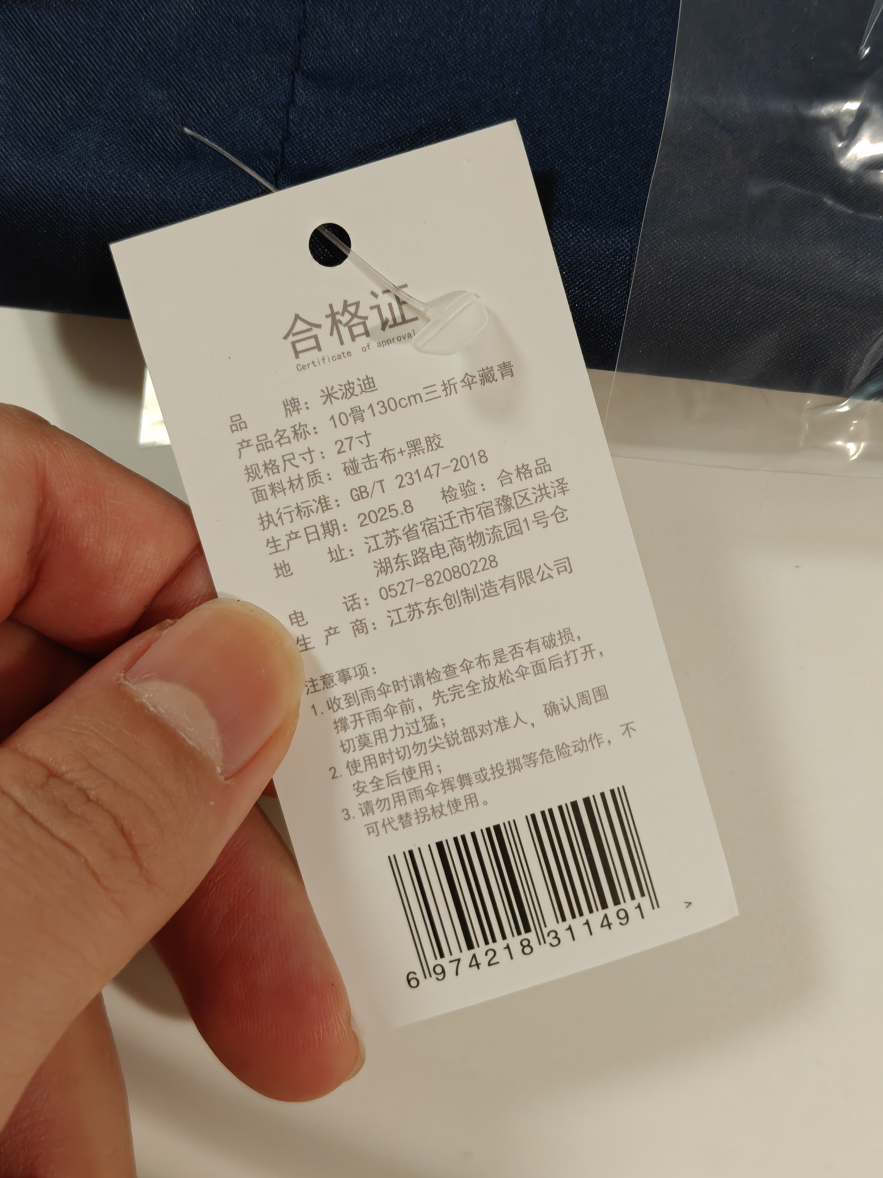 之前特斯拉送的伞伞柄融化了,寻思在京东买了把米波迪反向折叠的伞,这质量真垃圾可以看看图3和图4,无语了。一开始说便宜没好货,怪自己,后来发现他们宣传写140cm,合格证写130cm算虚假宣传吗?