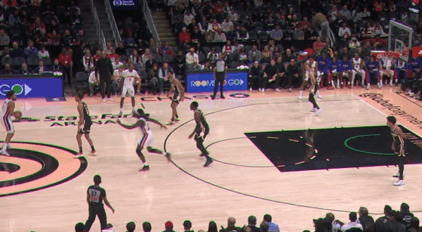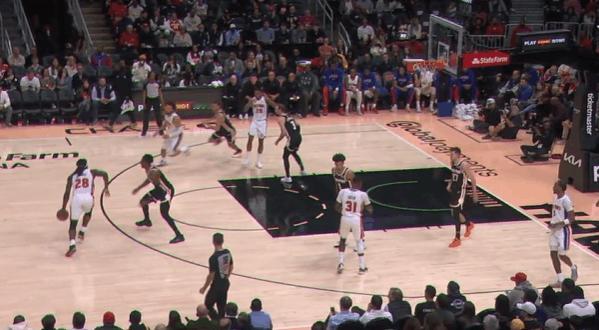 活塞观察:CC复出之战开启传球表演,25+10率队拿下11连胜经过3场比赛的修养,坎宁安终于在今天对阵老鹰的比赛中迎来复出,虽然个人进攻状态没有特别出色,但也在复出之战中交出了25+10+6的答卷,率队赢下11连胜。在比赛的开局阶段更是连送4记助攻穿针引线:图1先在右侧45°作为“大脑”发牌,给借助双塔无球掩护兜出的邓罗发牌,拿到本场第一记助攻。图2持球大核与侧翼神射之间的配合,早期进攻邓罗直接给刚过半场的CC挂“幽灵掩护”(Ghost Screen),抓戴森和克雷伊奇换防的时间差与空间差获取出手空间。先给射手邓罗连喂两球后,现在轮到了内线双塔:图3杜伦转换进攻内线深处背身要位打JJ,CC精准制导。随后再是斯图尔特,图4同样转换进攻内线深处背身要位,接CC跳传后内线顶着双人夹击打进。图5要到盖耶错位后“哈达威变向”启动右路突破,遇到弱侧肯纳德刷卡后“反胯拉回”迂回观察,再迅速衔接连续变向与此同时便随重心摆动,见盖耶防守重心被调度后立即衔接横撤步后的中投。第一节的4记助攻性质都更偏向于上球、“摆盘”,第二节上来CC开始策动进攻:图6挡拆行进间吸引奥孔古外出延误,CC试图加速右路突破穿过延误,结果陷入奥孔古、强侧协防人JJ、弱侧回收协防人肯纳德三人的包围之中。于是CC直接一记既隐蔽又精准,力道刚刚好的传球直接将球“变”到了斯图手中,为自己摆脱了这次危机,后者接球后暴力袭框。图7借詹金斯的无球掩护起手衔接和斯图的高位手递手配合,斯图顺下吸引弱侧克雷伊奇回收,CC跳起后佯装直塞底角的霍兰德,“戏耍”JJ后直接传给侧翼空位的格林。图8拖车进攻后佯装接球直接出手三分,直接点飞奥孔古直杀篮下,随后“故技重施”,跳起后佯装传给弱侧底角的霍兰德,误导防守人后直接找到侧翼空位的詹金斯。图9推过半场后立即与杜伦衔接“Drag掩护”配合,吸引奥孔古延误口袋传球回给杜伦,随后杜伦开始了他的表演:下球调整后一记精彩的欧洲步躲过JJ的协防,左手上篮打进。