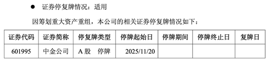 11月19日晚间,中金公司公告,公司与东兴证券、信达证券正在筹划由中金公司通过换股方式吸收合并东兴证券、信达证券。为保证公平信息披露,维护投资者利益,避免造成公司股价异常波动,公司A股股票将于2025年11月20日开市时起停牌,预计停牌时间不超过25个交易日。