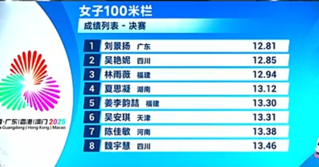 出人意料,一大群网红跨栏女队员里,冲出个名不传经传的黑马,广东队的刘景扬12秒81,夺得全运会金牌赛前斗志昂扬的吴艳妮这次成绩也不错,但是很可惜拿到了银牌而在短视频网红领域同样人气非常高的林雨薇、夏思凝,也只获得了铜牌和第四名说实话,我之前都没有关注过这个叫刘景扬的选手,但是听说她非常有实力所谓是金子总会发光的。相信通过这次比赛,在女子跨栏这个赛道上,应该是出名了