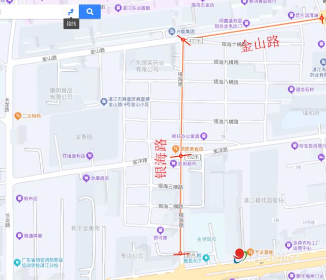 银海路(银海路泓溢冷库门口-银海路与金山路交叉口)施工段落为422米,金山路(银海路与金山路交叉口-金山路与瑞云北路交叉口)施工段落为288米。