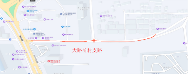 瑞云南路辅道(湛江大道西侧)施工段位为77米、瑞云南路-鸭槽干渠支路施工段落为226米。