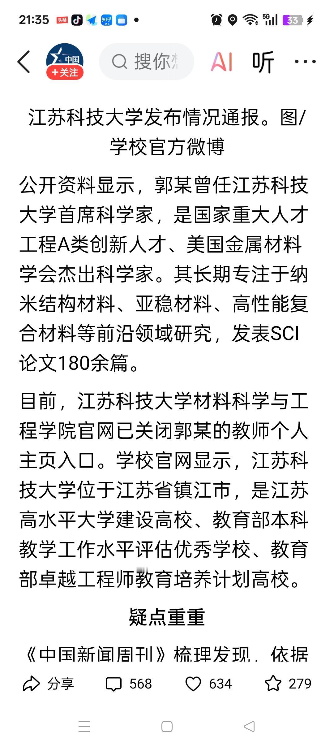 高中学历能当博士生导师,我忍了! 公开简历多处与事实不符,学校没发现,我也忍了! 但他居然还当上了某大学首席科学家,我真的有点绷不住了! 但凡学校负责招聘的工作人员,稍微仔细一点,对他简历说的经历,哪怕调查一项,也不会出现如今这种窘境啊。 当然也有可能这人是真的有点水平,要不然他指导的是理工科,手底下的学生又是博士生,没有点水平会很容易露馅。 这件事到现在都是个迷,真有点让人看不懂[捂脸][捂脸]