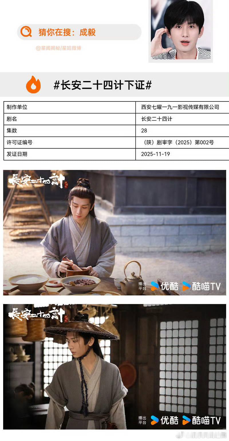 成毅《长安二十四计》今日过审下证 燥候这个纯恨战士谢淮安💚