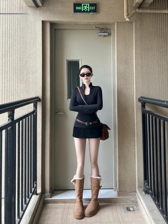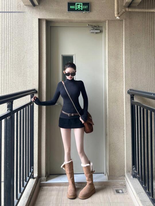 显身材穿搭 显瘦穿搭 早春 跨年穿搭 长靴 黑色系