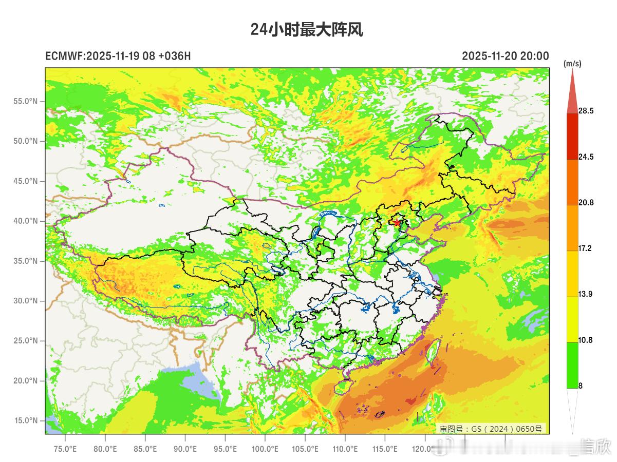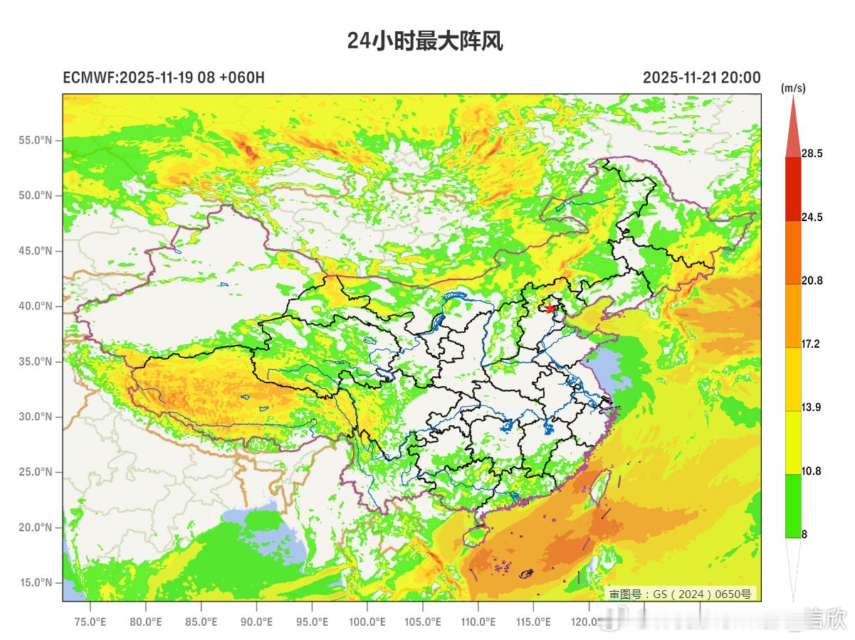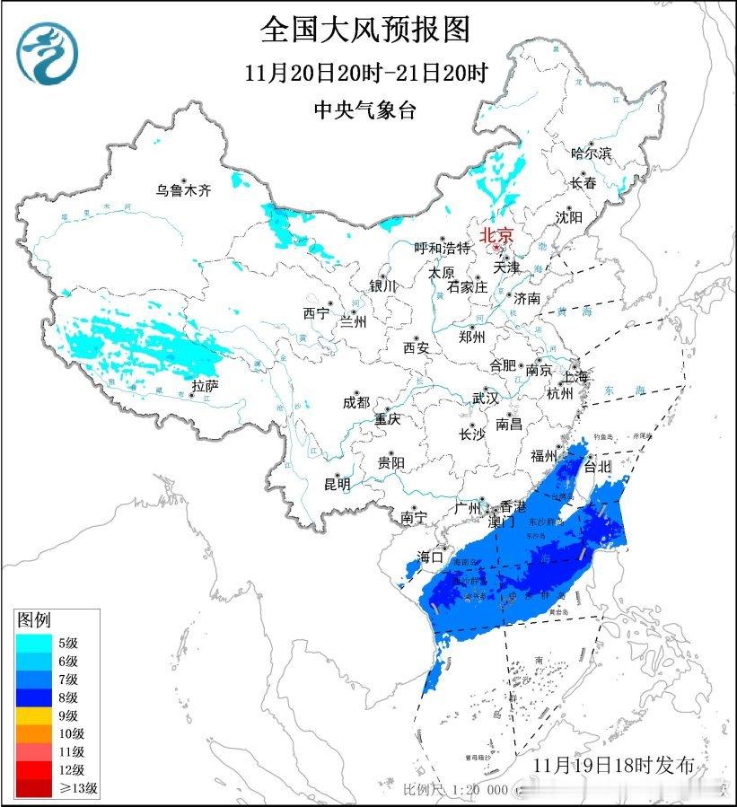 【大风】未来2天台湾海峡到南海北部和中部,还会出现7-8级大风,阵风9-10级。此外明天内蒙古中东部和西藏西部阵风也可达7-8级。