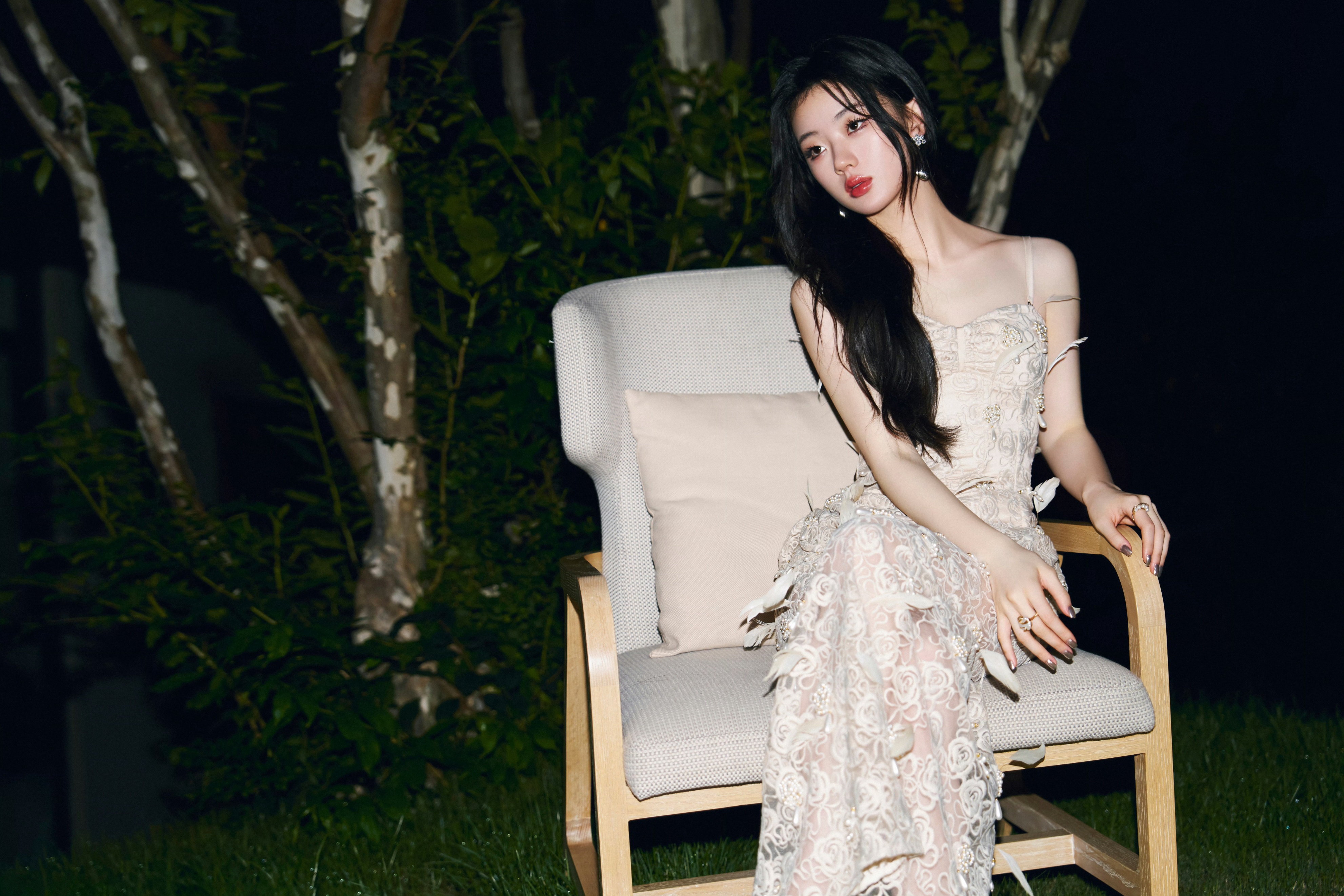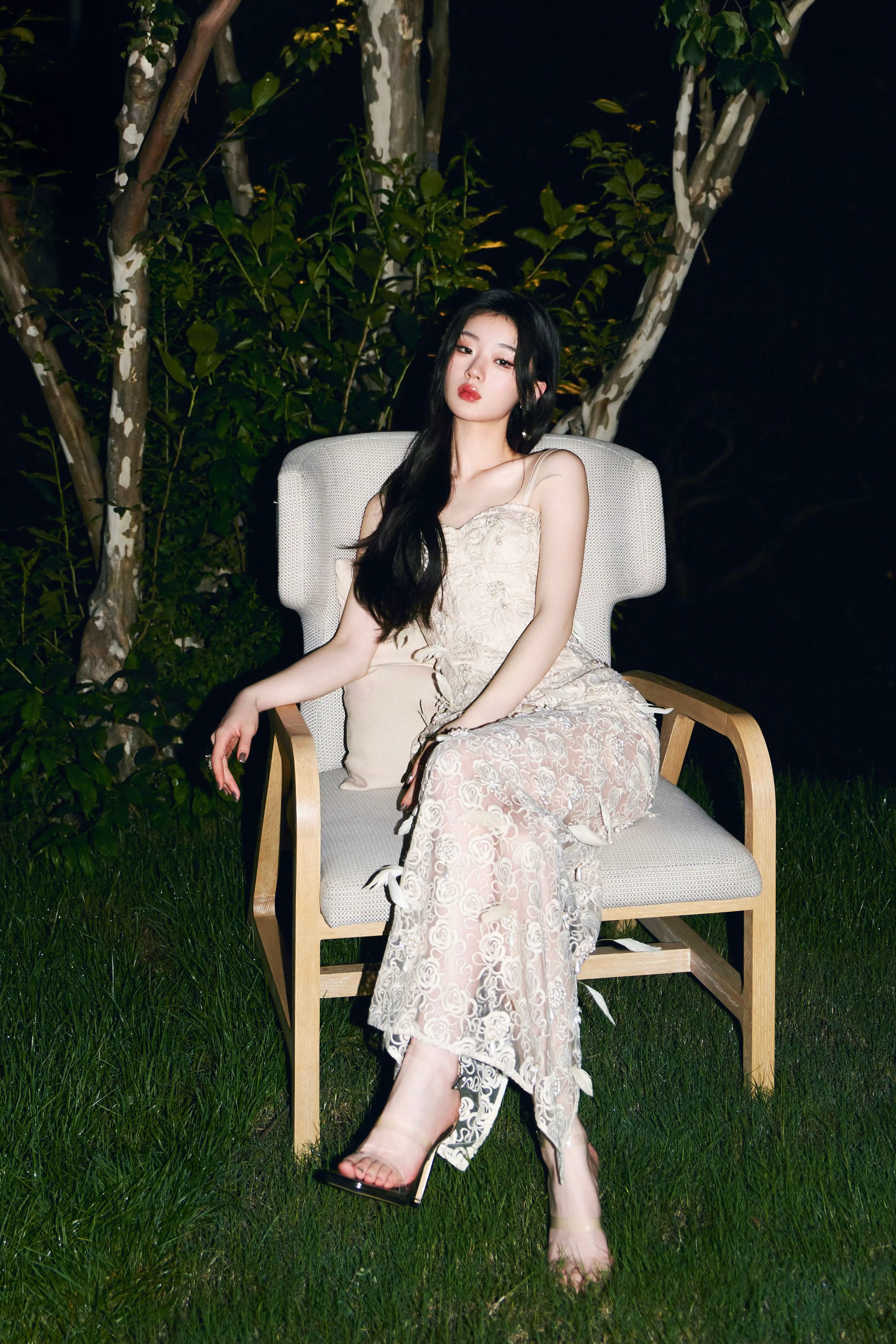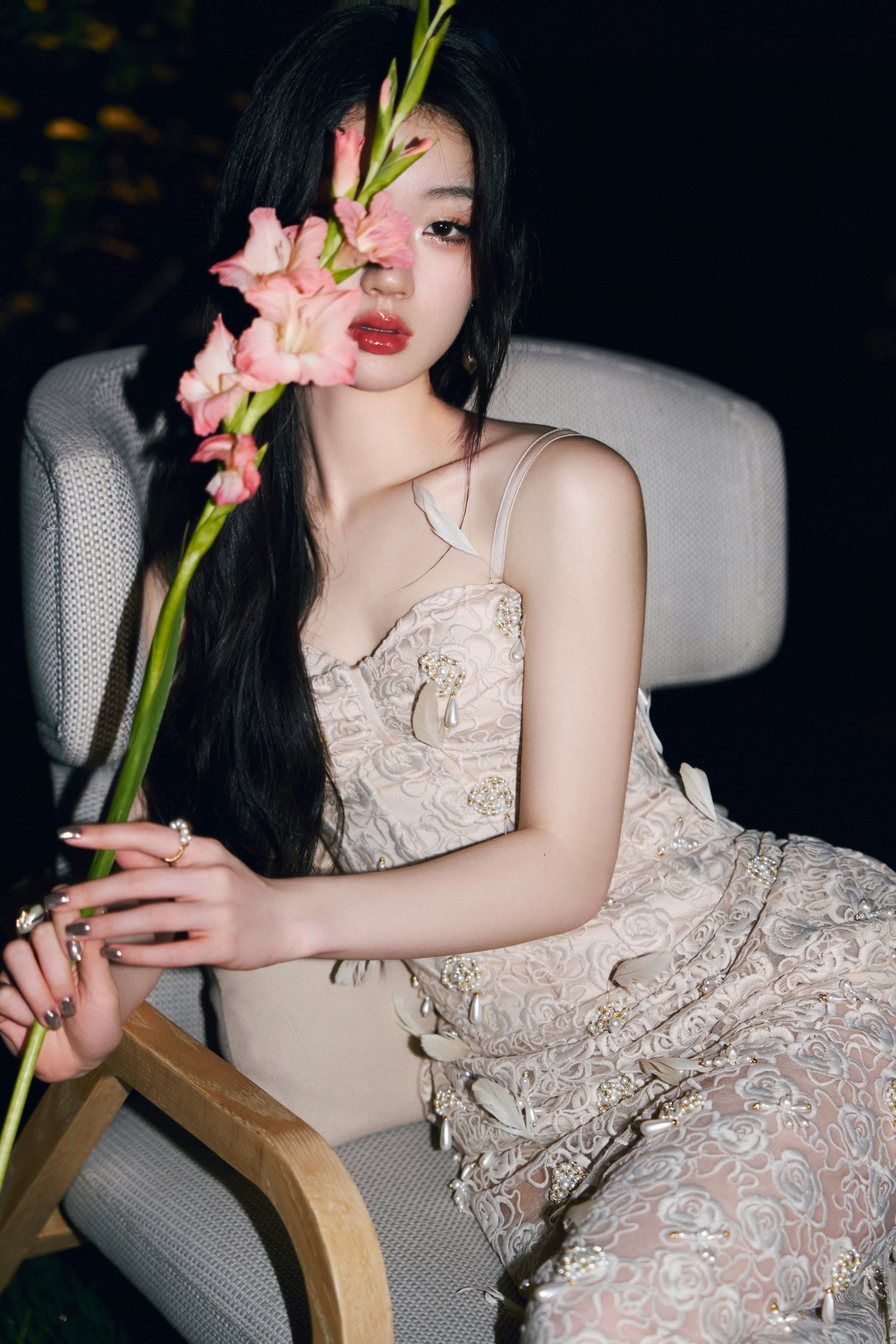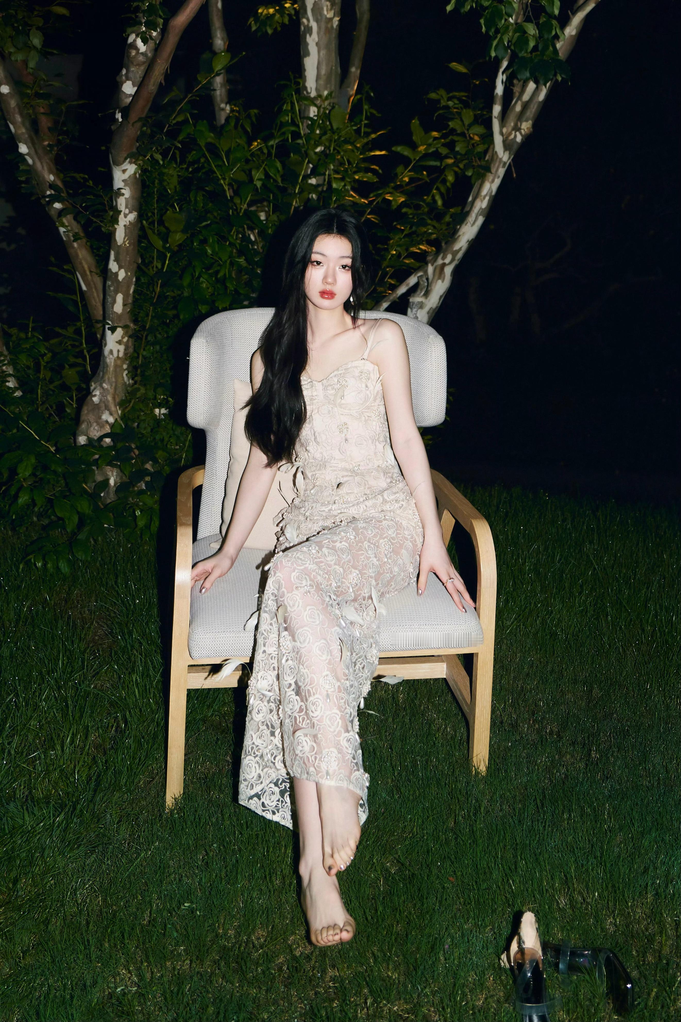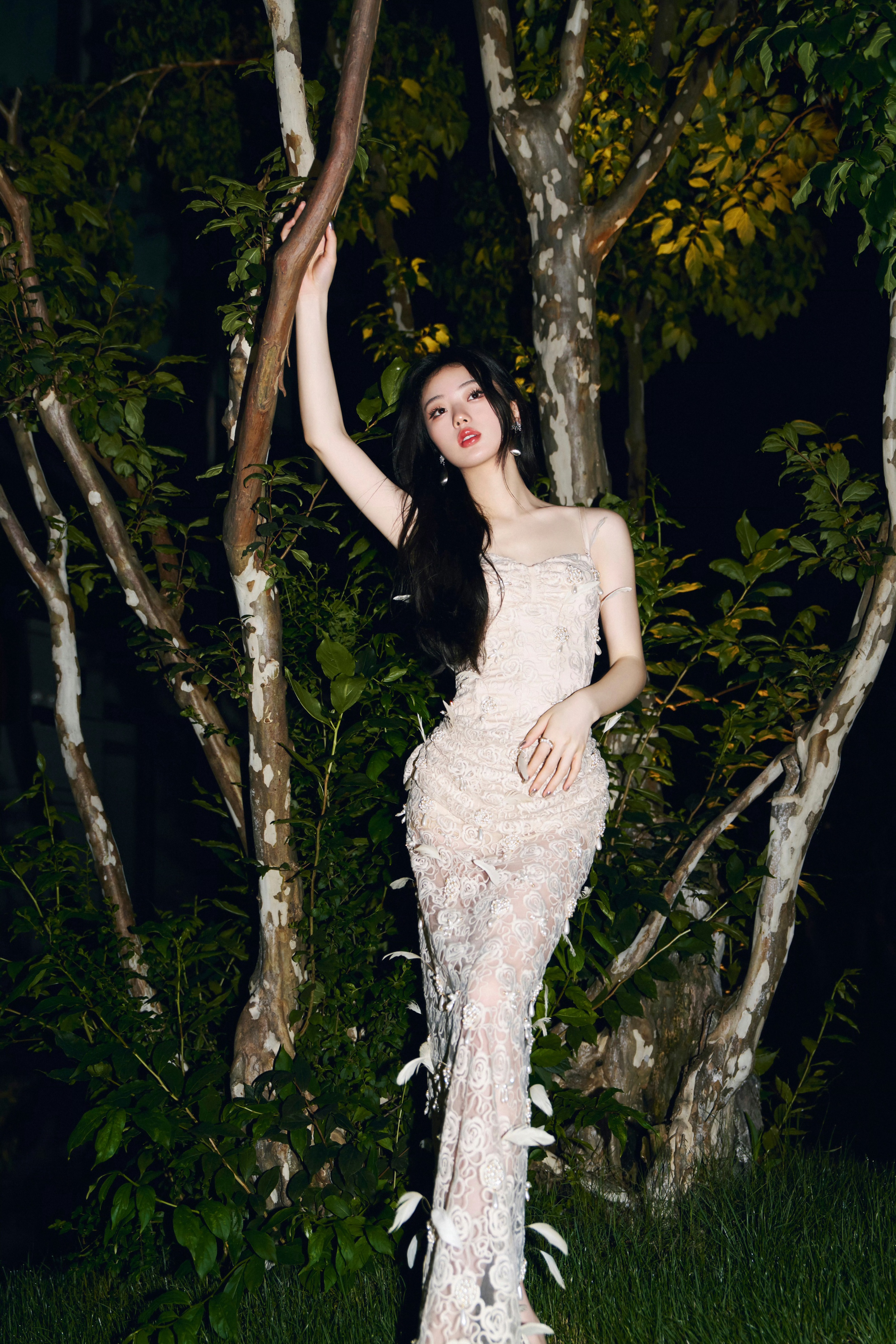 00后美女歌手单依纯身穿白色蕾丝花朵透视裙,诱惑力极度上升,尤其是下身...