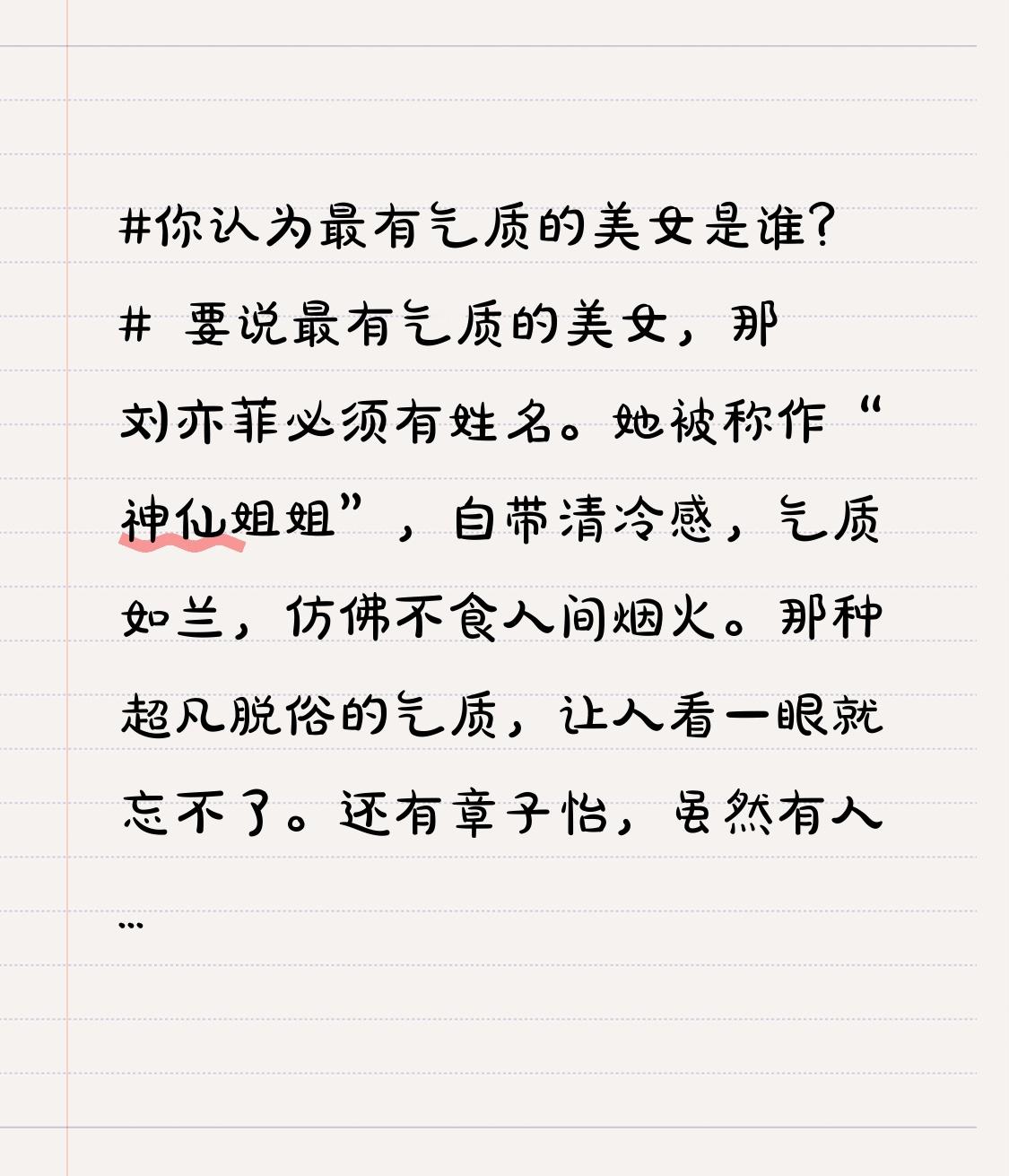 你认为最有气质的美女是谁? 要说最有气质的美女,那刘亦菲必须有姓名。她被称作“神仙姐姐”,自带清冷感,气质如兰,仿佛不食人间烟火。那种超凡脱俗的气质,让人看一眼就忘不了。