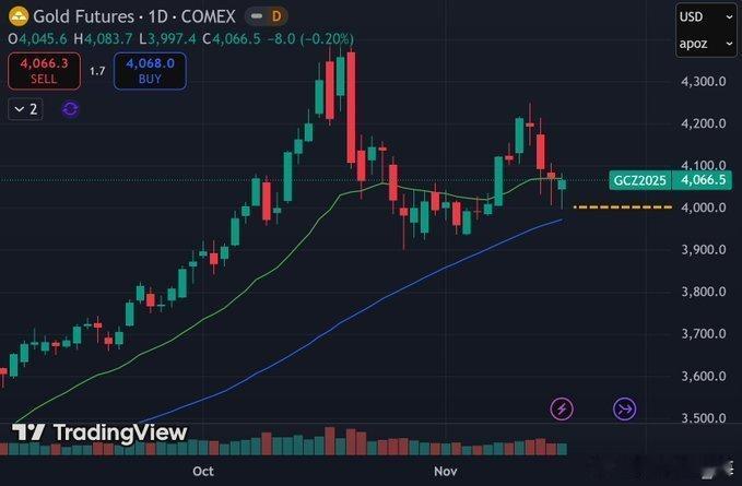 黄金这波牛市得益于世界各国的央行已连续第三年总计购买超过了1000吨(数据截止2024年)。目前金价仍保持在4000美元以上,上升趋势依然保持在红点趋势线之上。
