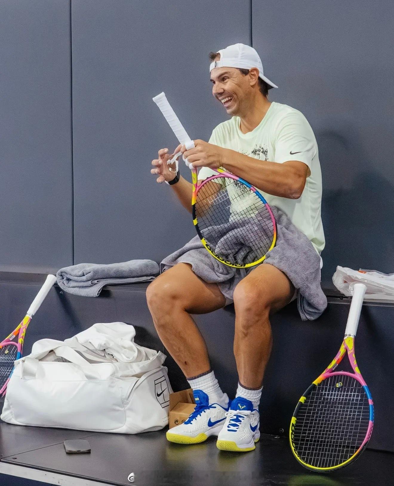 【久别球场的纳达尔陪埃拉训练】纳豆的鞋子很美的感觉。