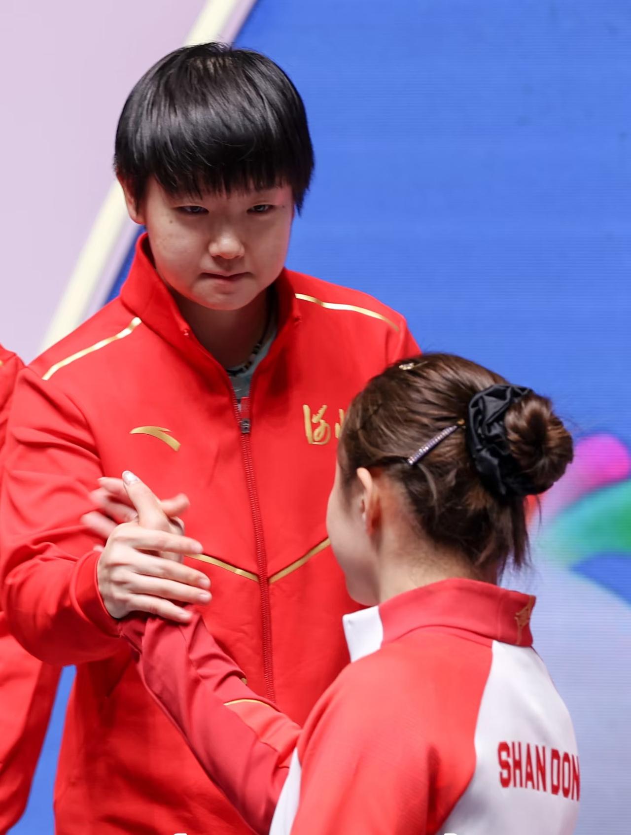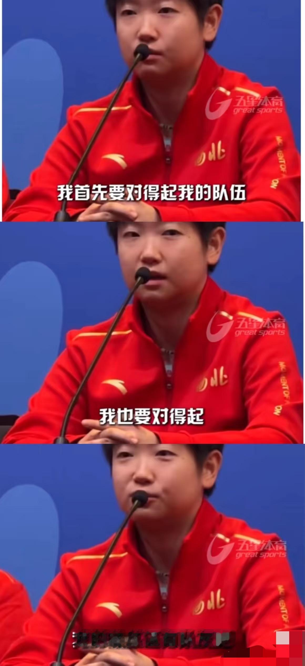 小杨教练问孙颖莎还想不想打辽宁团体赛? 孙颖莎说:“想打想拼, 我想对得起我的队伍, 教练和队友!” 孙颖莎在单打获得银牌后, 第一场团体淘汰赛, 就是对战上一届团体冠军辽宁队, 小杨就问莎莎想不想上, 孙颖莎的格局太大, 真的是为队友, 为河北女团拼到了一块银牌, 即使空砍, 也要去上, 对得起这三个字太重, 格局太大, 孙颖莎扛下所有, 永远佩服孙颖莎, 在单打失利,痛苦,惋惜的时候, 孙颖莎已经拿起球拍, 准备下一场比赛啦!