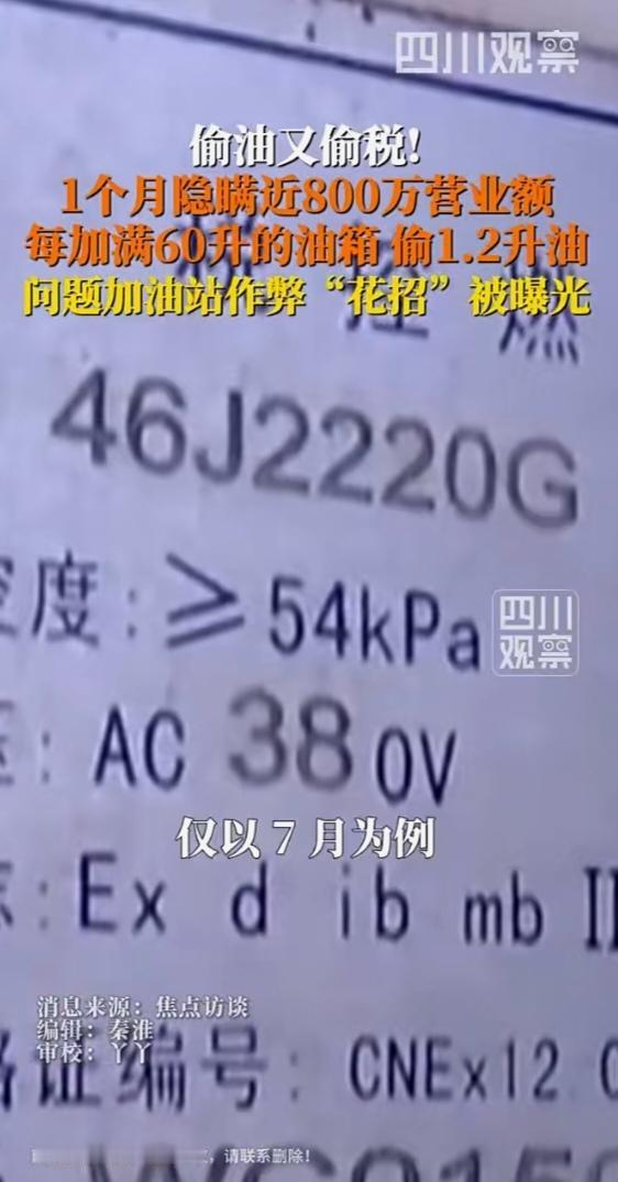 加60升少1.2升!央视曝光加油站"偷油黑幕",高科技作弊竟藏双重陷阱 “油表蹭蹭涨,油箱却不实”——很多车主的疑惑,终于被央视11月19日的曝光揭开谜底。部分问题加油站暗藏“阴阳电脑”和作弊软件,每加100升油就悄悄“偷”走2-5升,车主加满60升油箱至少亏1.2升,看似不起眼的比例,实则是盘剥消费者的“黑色生意”。 这些加油站的作弊手段早已升级为高科技操作:前台电脑显示正常数据迷惑消费者,后台隐蔽设备却藏着可随意设置参数的作弊软件,输入数字就能控制偷油比例。更狡猾的是,一旦察觉检查,按下快捷键就能一键恢复正常参数,不留任何痕迹 。更令人震惊的是,作弊软件还暗藏“偷税功能”,某加油站7月实际销售额850万,报税时却仅申报77万,偷逃税款近800万。从改装加油机主板到预留软件后门,一条涵盖软件开发、设备改装、违规运营的黑色产业链已然形成,涉及21个省市 。 面对隐蔽的作弊套路,消费者并非无计可施。加油前可查看加油机的计量铅封是否完好、检定证书是否过期;通过官方APP查询加油站诚信记录,避开投诉频发的站点;也可通过对比不同加油站的续航里程,及时发现异常。 值得欣慰的是,市场监管总局已启动精准打击行动,通过“技术+执法”模式破解作弊软件,追查黑色产业链上下游 。随着长效监管机制的完善和智慧监管系统的推进,这些“偷油又偷税”的不法行为终将无处遁形。 每一滴油都关乎消费者权益,每一次监管亮剑都在守护市场公平。相信在严查严打之下,加油站的计量将回归透明,车主们终将能放心加油,不再为“缩水油”买单。不正规加油站 加油站的骗局 加油站的骗局 油偷