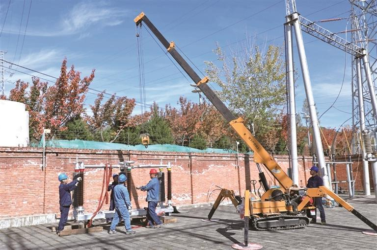 10月29日,国网陕西电力宝鸡供电公司电力人员在110千伏太白变电站开展融冰刀闸安装作业(资料照片)。