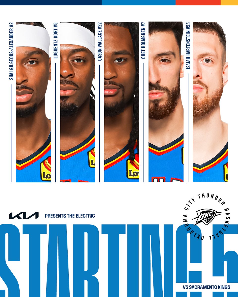 雷霆队报道。起亚汽车发布本场比赛首发阵容:我们正在直播我们的首发五虎。