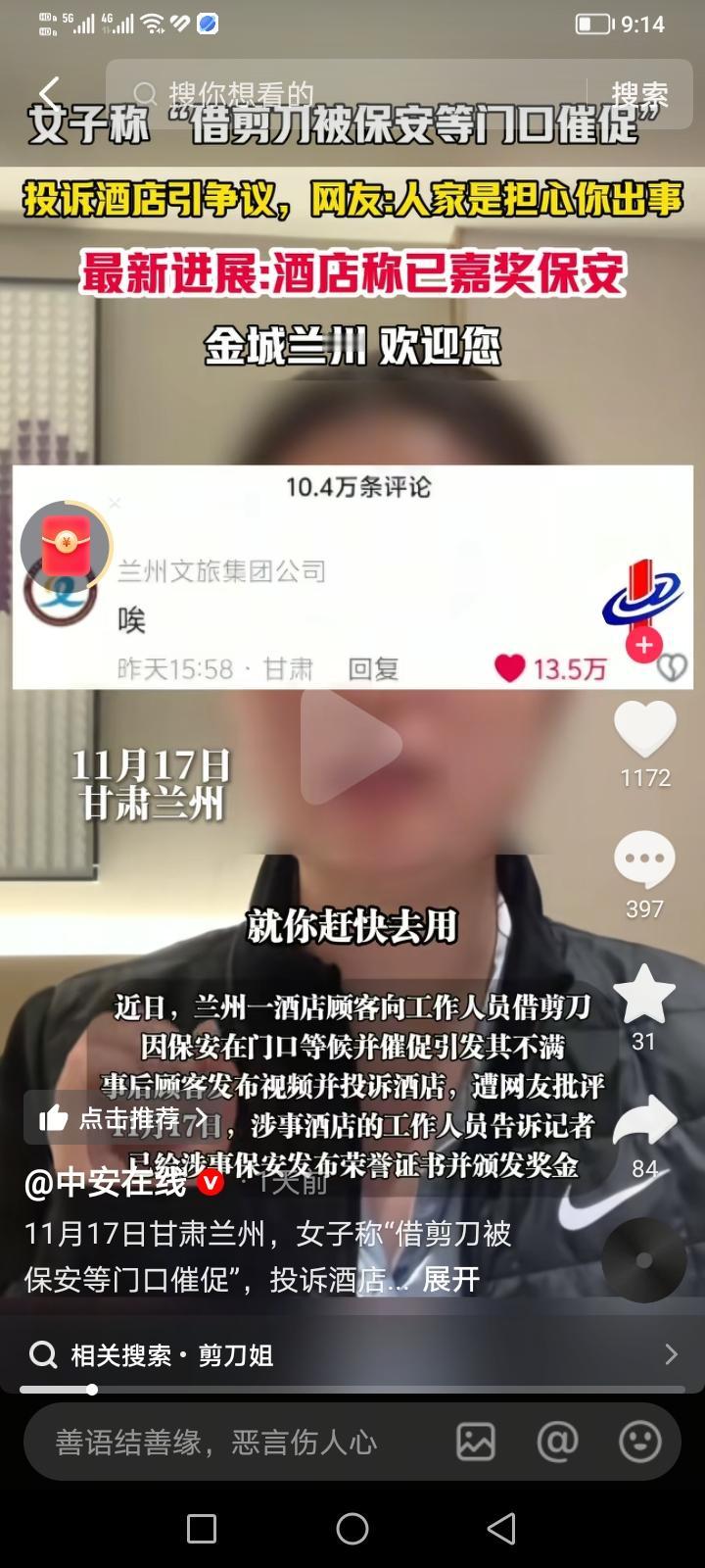 什么叫一个人改变了规矩?前一阵子有一独立女性去甘肃,入住了一家酒店。晚上去前台借剪刀,工作人员担心出意外就叫保安大哥跟着去了,让女子用完就马上还回来。保安大哥站在门口连门都没踏进去,酒店这方面做的并没有任何问题。保安大哥等了这女的三四十分钟,然后这女的就发了一个很长的视频,说保安大哥恐吓他,把人家酒店说的一文不值。这女的后来还跑去兰州文旅投诉,兰州文旅只回复了一个字:“哎”。以前不借剪刀给客户只是行规,现在变成了明确规定。逼的兰州文旅都改了简介:金城兰州欢迎你,没剪刀!这个女的就是典型的损人不利己,前人砍树,后人暴晒。这下子把所有人的路都堵死了,舒服了这下。我们不能让好人受冤枉,酒店方面嘉奖了保安大哥。每一个奇葩的规矩,背后都有一个奇葩的故事,就这么来的(图片信息来源:中安在线)。规矩 对人的定义 规矩礼仪 很准的规矩 立规矩技巧