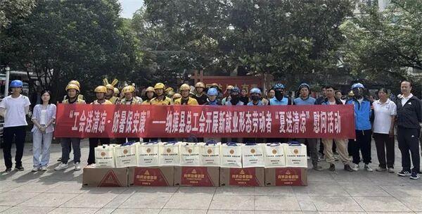 纳雍县总工会在县文化广场开展“夏送清凉”慰问活动,为外卖骑手、货车司机及邮政快递等新就业形态劳动者送去防暑降温物资
