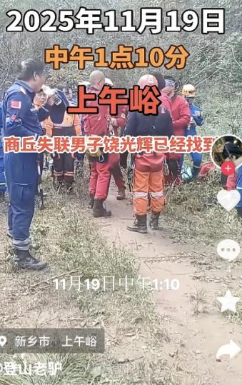 11月19日中午,南太行失联40余天的饶某辉被河南辉县驴友野马找到了,实现了饶某辉父母及千万网友“活要见人、死要见尸”的愿望,未辜负大家的期望,商丘失联人员饶某辉可以回家了。 11月19日中午,河南辉县徒步爱好者“野马”蹲在一处崖下,发现地上黑色运动鞋,和他手里家属提供的饶光辉照片里的那双,几乎一模一样。 再往上两步,一部屏幕碎裂的手机静静躺着。 再往崖底看,一具遗体蜷缩在乱石间。 他摘下手套,对着山谷喊了声:“找到了。” 这一声,让全国千万网友悬了43天的心,终于落了地。 故事要从10月7日说起。 29岁的饶光辉开着车,载着简单的行李,沿着新乡辉县上八里镇的盘山路往上爬。 目的地是鸭口村上午峪附近。 他早就在攻略里标记过,这里有未开发的野山,适合徒步。 当晚8点,农家乐老板接到他的电话:“叔,我迷路了,手机快没电。” 此后,这个29岁的年轻人彻底消失在南太行。 南太行不是普通的山。 这里峰林如剑,悬崖陡得能听见风割过岩缝的声响,有些路段连当地猎户都不敢轻易走。 饶光辉失联的区域,手机信号时有时无,山涧里的水潭藏着暗涡,连搜救犬的嗅觉都会被潮湿的草木味干扰。 家属急得整宿睡不着,补办手机卡后,把重点锁定在蝎子棱、皇姑栈道和“死羊”三个方向。 可43天过去,上百名救援队员带着无人机、生命探测仪轮番上阵,始终没找到线索。 转机出现在一个叫“野马”的徒步爱好者身上。 这个网名的由来,是他总骑着一辆旧摩托在山里跑,“跑起来像马”。 43天前,他在户外论坛看到饶光辉失联的消息,当晚就背上行囊:“我是南太行的‘活地图’,得去试试。” 他的装备简单,一个装着压缩饼干的登山包,一瓶山泉水,还有跟着他跑了8年的金毛犬旺财。 每天天不亮,他就从山脚出发,沿着陡峭的小路往上爬,遇到悬崖就系上安全绳,遇到灌木丛就用手扒开。 旺财在前头探路,他背着急救包跟在后面,每走几步就喊一声“饶先生”。 有人劝他:“搜救队都找了这么久,你一个人瞎转悠啥?” 他抹把脸上的汗:“家属天天在村口等,我多走一步,他们就少一分绝望。” 43天里,他踏遍了蝎子棱的每道山梁,爬上了皇姑栈道的悬崖顶。 最险的一次,他在“死羊”附近的崖壁上滑了半米,多亏腰间的安全绳拴在老松树上。 11月19日,是野马搜寻的第43天。 他像往常一样,从“死羊”方向往上攀。 快到崖顶时,旺财突然对着石缝狂吠。 他凑过去,先用登山杖拨了拨乱石,接着就看见那只黑色运动鞋,和家属描述的一模一样。 再扒开旁边的荆棘,一部手机躺在落叶里,屏幕早已碎裂。 野马的心跳得厉害。 他顺着崖壁往下看,石缝里露出半截深色衣物。 下去查看时,遗体蜷缩在石窝里,身上的冲锋衣已经褪色。 他没敢多碰,只拍了照片,立刻下山报信。 消息传开,饶光辉的父亲朱广军连夜从商丘赶到辉县。 在崖下,老人摸着儿子的遗体,哭得直不起腰:“我就说他能挺住,他从小就倔……” 卫辉斑马救援队很快赶到,用担架小心地把遗体抬上山。 野马的故事火了。 有人翻出他的社交账号,才发现这个40岁的男人,本职是货车司机,业余时间全泡在南太行的山路上。 他的朋友圈里,最多的就是山景照和救助小动物的视频。 去年冬天,他还救过一只掉进冰窟窿的野兔。 找到饶光辉后,有人提出要给他报酬,他直接回了句:“不用,能帮人回家,比啥都强。” 这条视频在抖音上转了几十万次,评论区全是“好人一生平安”。 其实野马自己也没想到会火。 他只是觉得,“山里的人,就该互相搭把手”。 就像当年他迷过路,是一个老猎户用柴刀砍出条路,把他带出来的,“现在轮到我了。” 这场43天的寻找,最终以“找到”画上句号。 可它留下的,远不止一个生命的归处。 就像野马说的:“山不会记住我,但它会记住,有人曾为另一个生命,拼尽全力。” 而我们记住的,是一个徒步者用43天,给另一个家庭,一个“活要见人”的答案。 主要信源:(深圳新闻网——南太行失联43天男子遗体找到!警方已赶至现场 极目新闻——南太行失联43天的男子遗体找到了!警方已赶至现场,救援队:从衣服...)