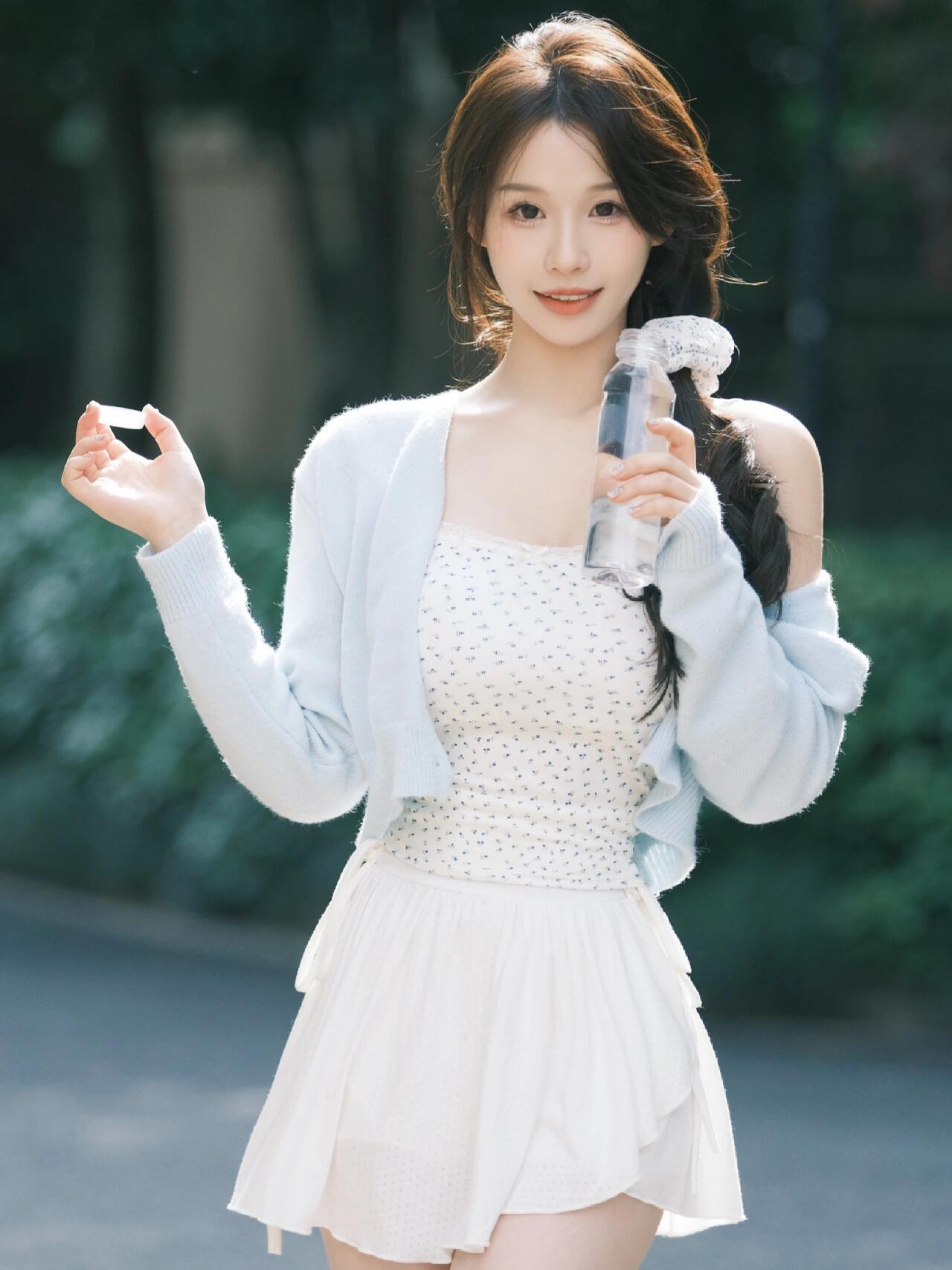 这套白色叠穿太戳审美!长款风衣+短款西装裙,利落短发配黑包高跟鞋,气场与优雅都拿
