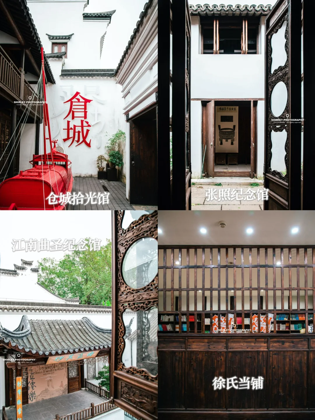 仓城拾光馆——张照纪念馆——江南曲圣纪念馆——徐氏当铺——陆氏宅——大仓桥——云间美术馆——灌顶禅院——松江布展示馆——陆军戏剧教育馆——杜氏雕花楼——敬松阁红木文化艺术展馆——海派玉雕馆——张氏米行——聚影阁欢喜小院——杨炳文宅