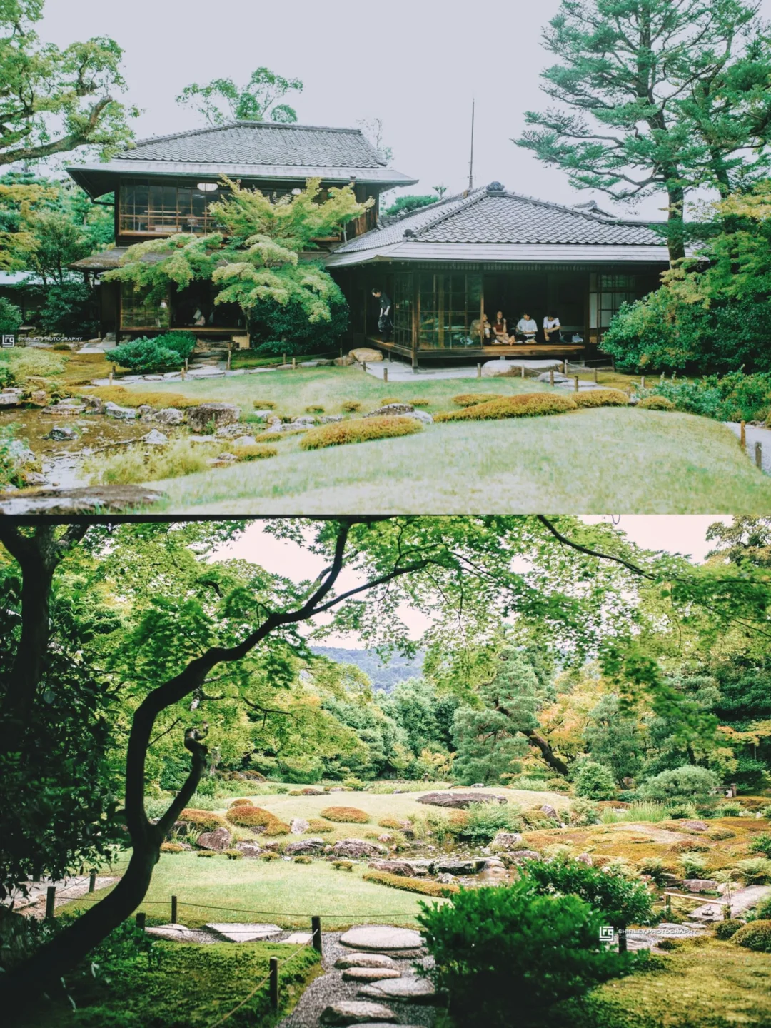 🌱无邻庵出自造园大师小川治兵卫(七代目)之手,3000平米的面积仅三栋建筑物,大部分场地都留给了山水池园。庭园引入琵琶湖疏水道的水源,溪流湖泊瀑布与草坪丛林共同组成了池泉洄游式的庭园。