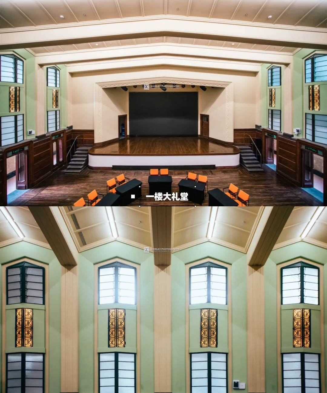 1️⃣层:大礼堂,窗户和灯箱均具有装饰艺术派的精美细节,今后也将用于举办的重大公众活动