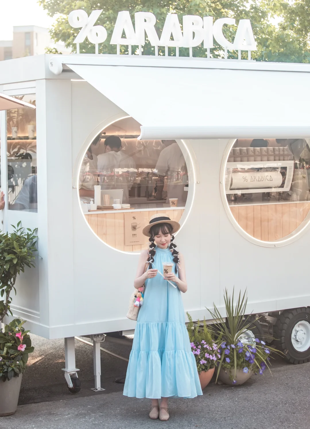 湖畔还有一辆很萌的% Arabica咖啡小车,买咖啡的同时拍个照也很出片。