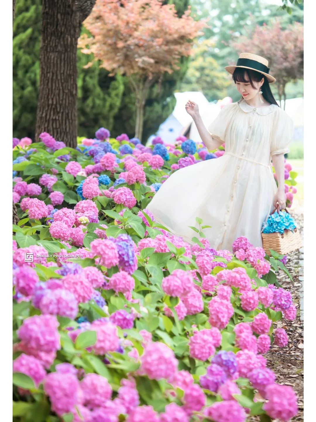 枫香草坪南面的环园南二大道边有一片十分密集的绣球花丛,适合坐下拍,午后1点光线很绝。